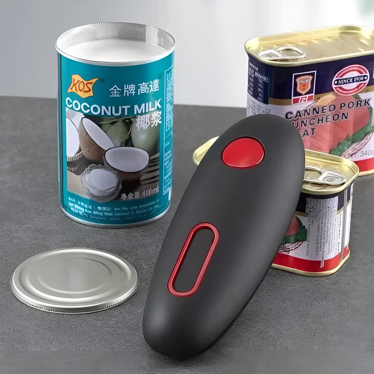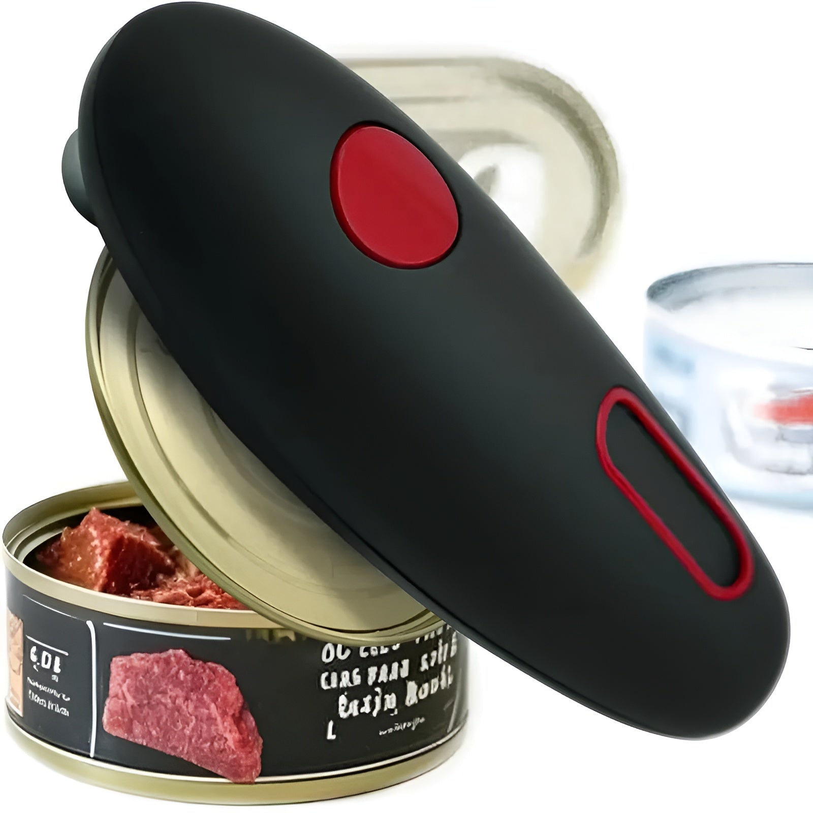 Haz que abrir latas sea más fácil y seguro con este abrelatas eléctrico portátil, diseñado para eficiencia y comodidad en la cocina.