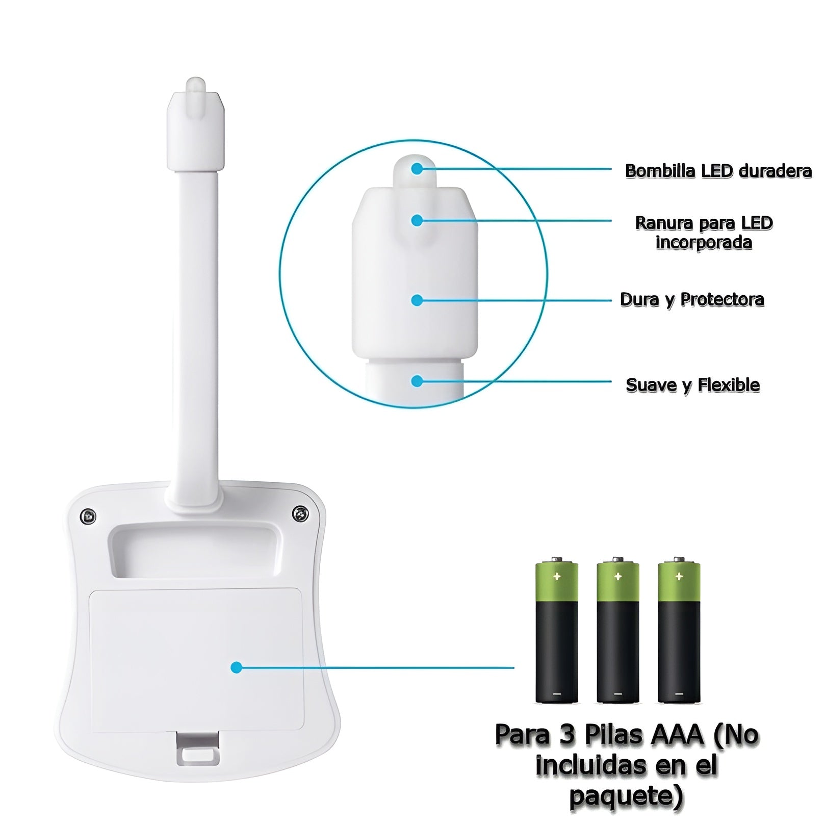 Diseño adaptable y fácil instalación: Su brazo flexible y resistente permite ajustarlo a cualquier inodoro en segundos, sin complicaciones. Además, es resistente a salpicaduras, fácil de limpiar y seguro de usar.