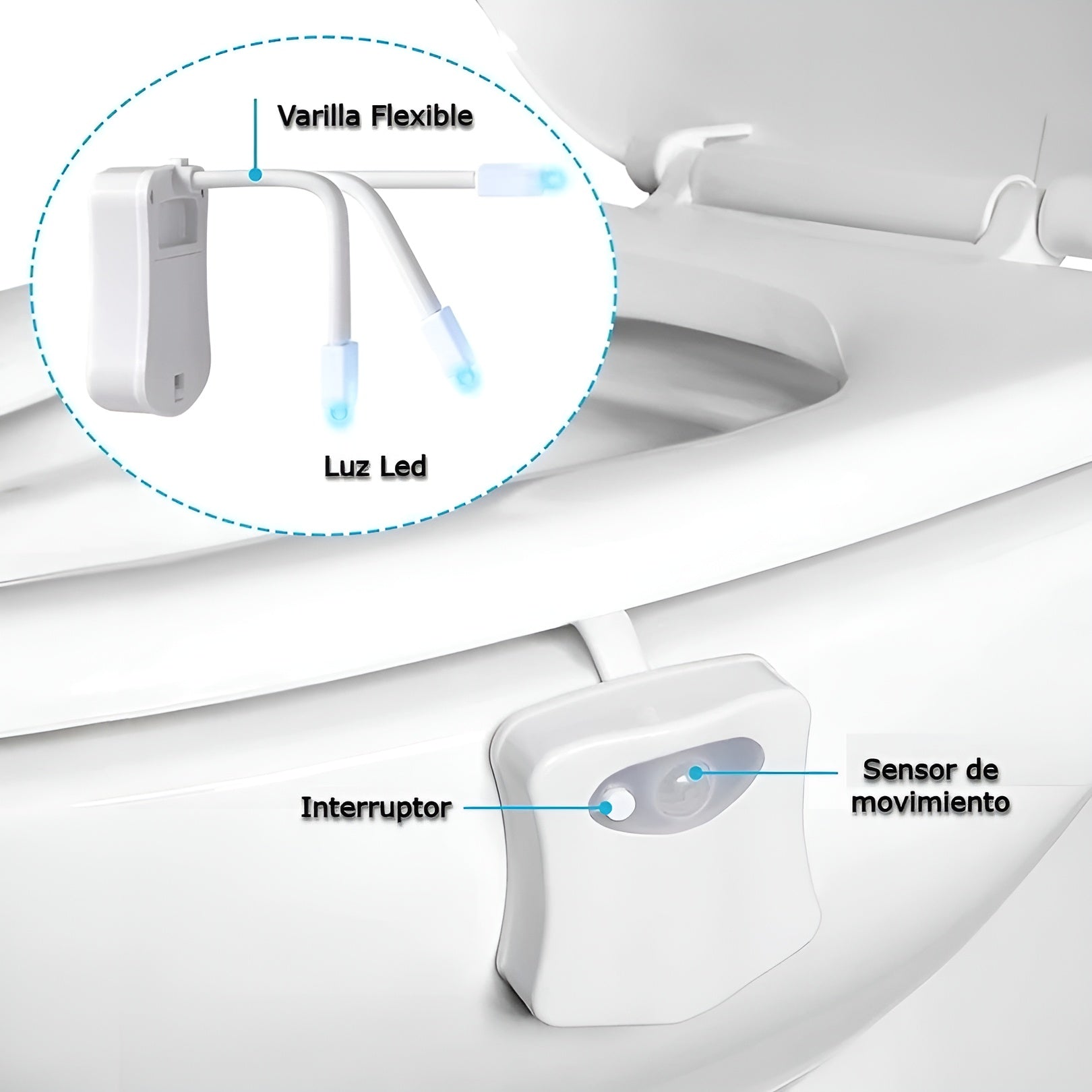 Haz que tu baño sea más cómodo y moderno con nuestro Sensor de Luces LED para Inodoro, diseñado para encenderse automáticamente en la oscuridad y apagarse al detectar luz, brindando una experiencia funcional y decorativa.
