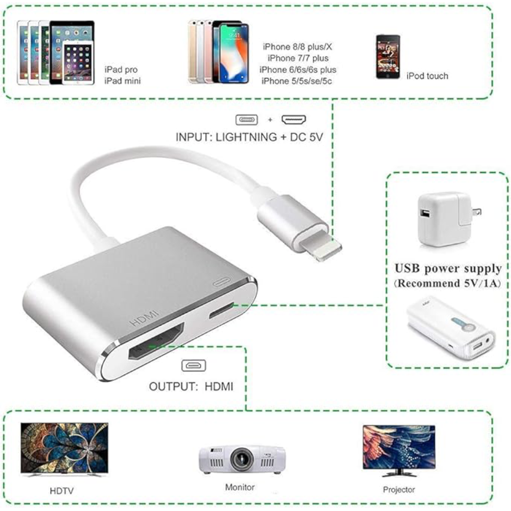 Este adaptador HDMI Lightning MPIO te permite ver tus diapositivas, películas, fotos en tu iPhone o iPad...