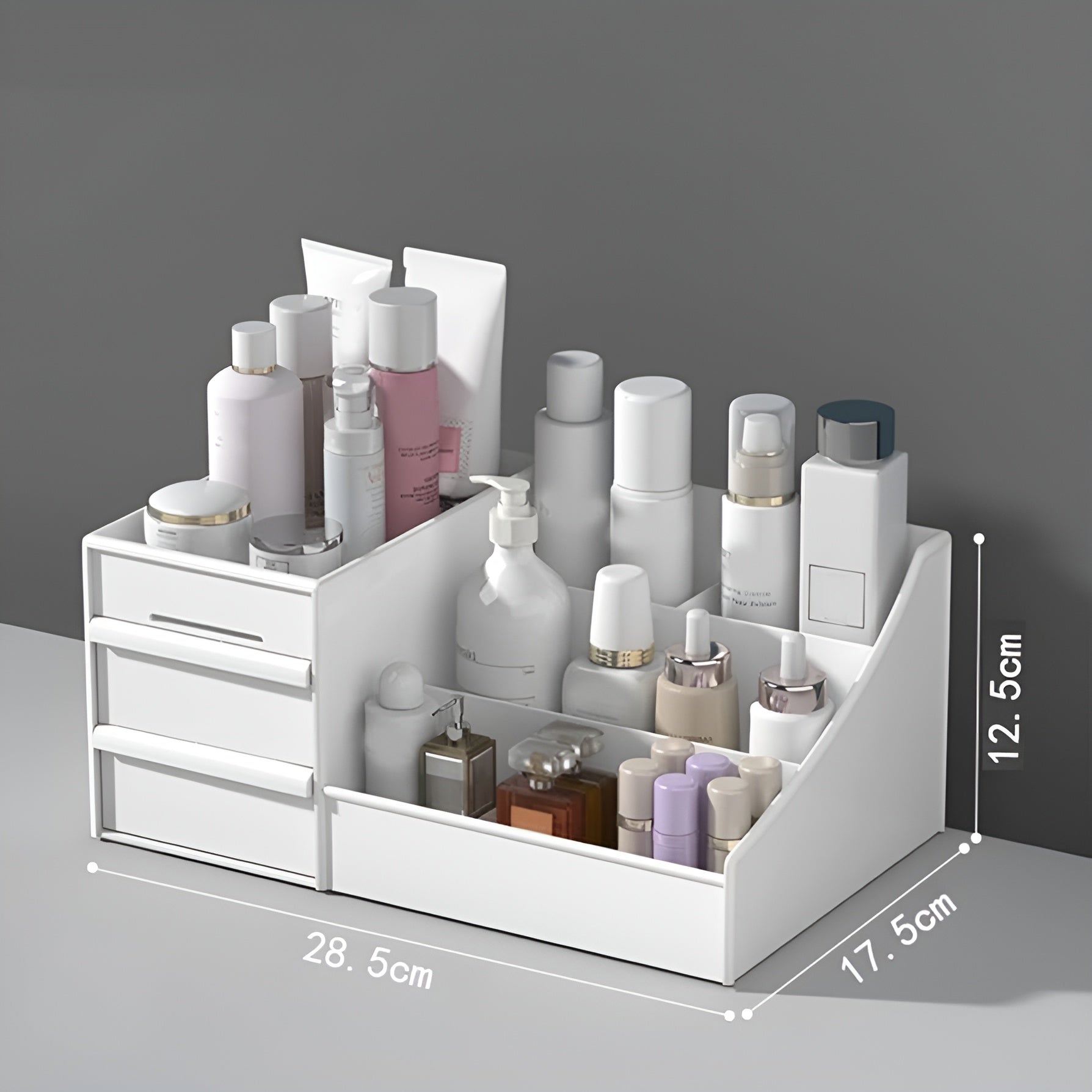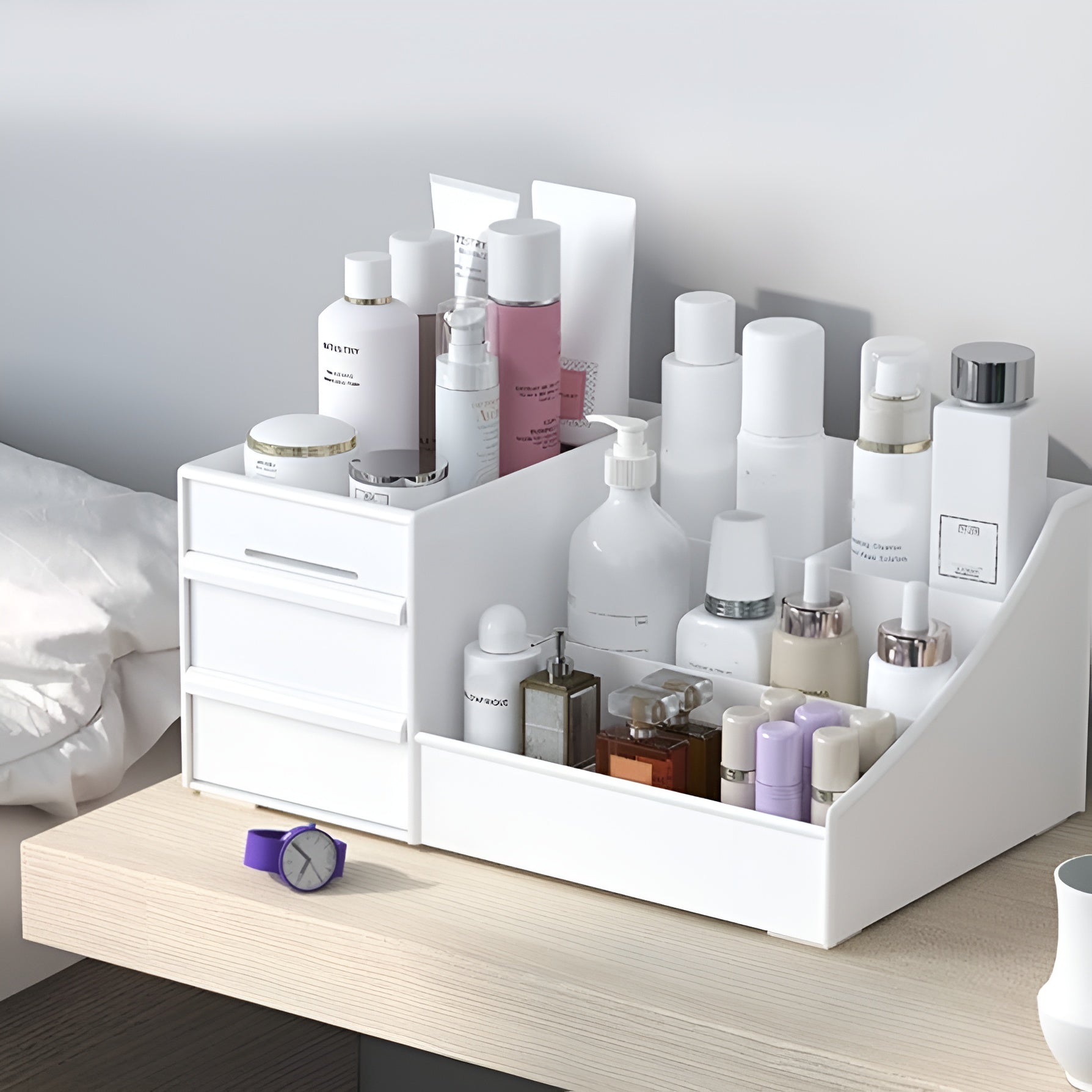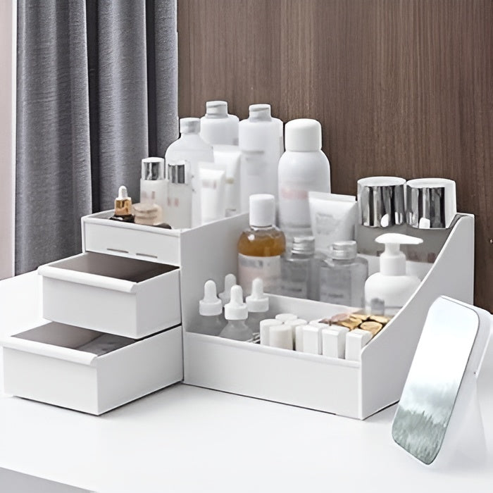 Organiza y protege tus cosméticos con esta caja de almacenamiento multifuncional, diseñada para ofrecer una visión completa y un acceso rápido a tus productos.