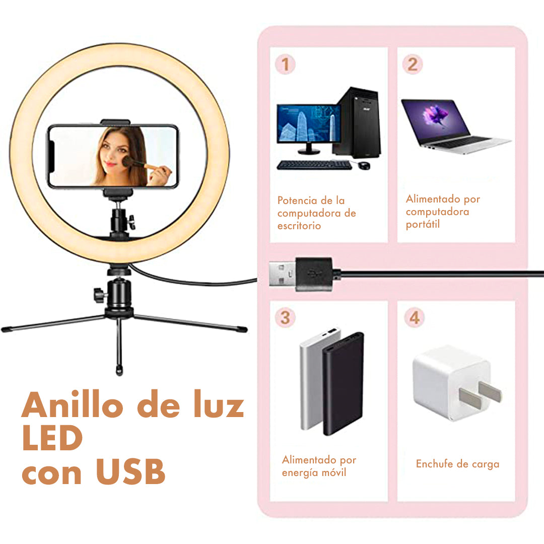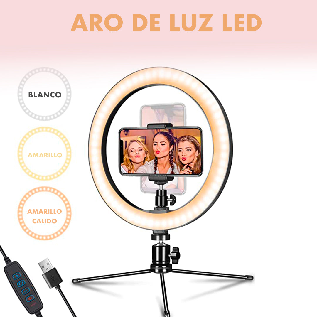 • Aro de luz de 25cm: este aro de luz tiene un diámetro de 25cm, lo que lo hace perfecto para iluminar cualquier objeto o persona que desees fotografiar o grabar en video.