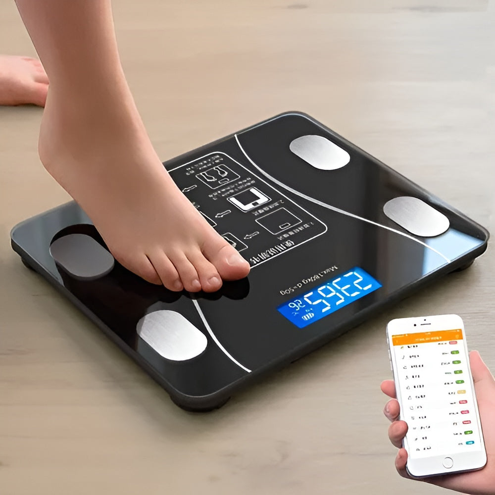 Medición avanzada sincronizada: Conéctala vía Bluetooth a la app móvil para ver y registrar tus datos con detalle. Se recomienda usarla descalzo y sobre superficie firme para una mayor precisión.