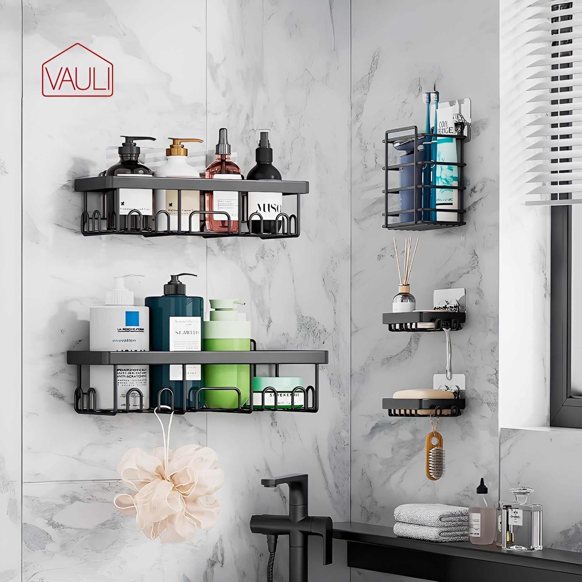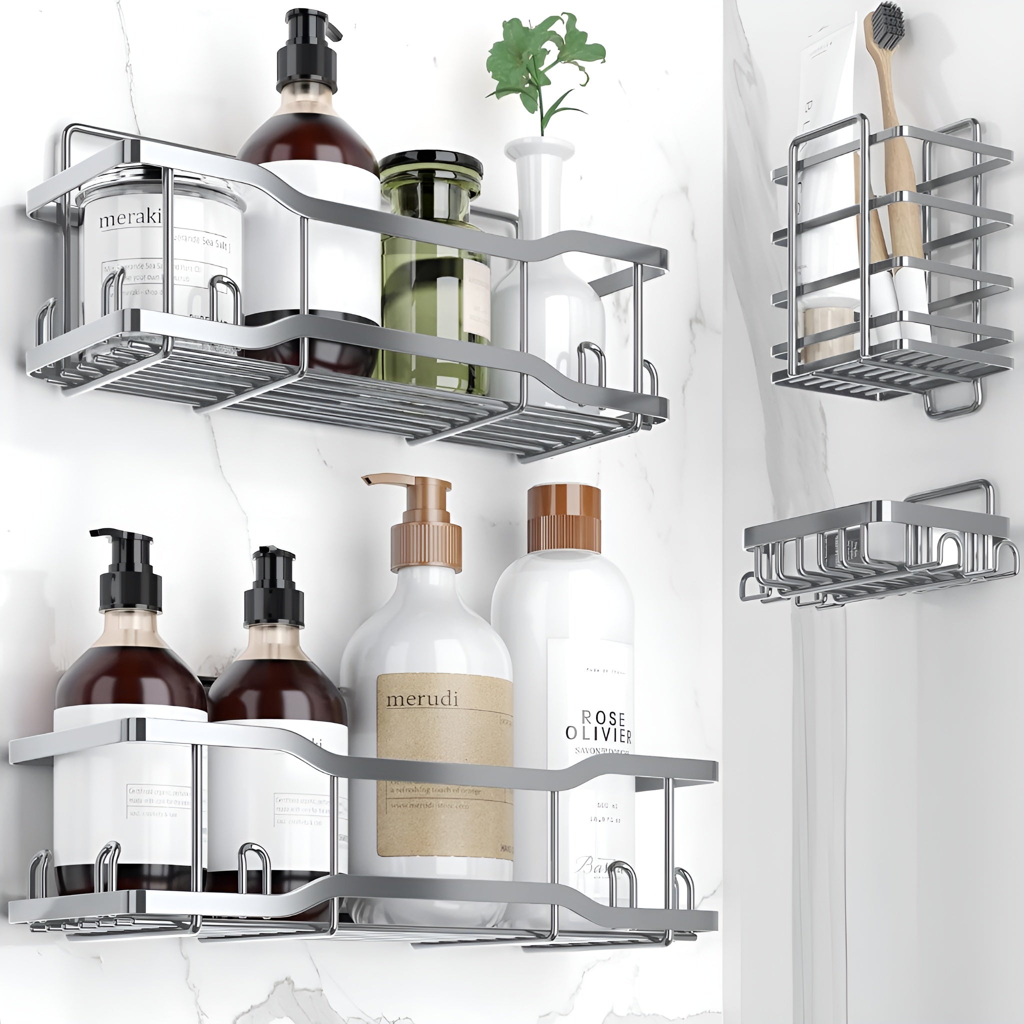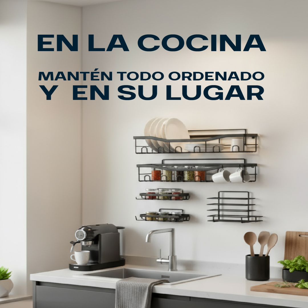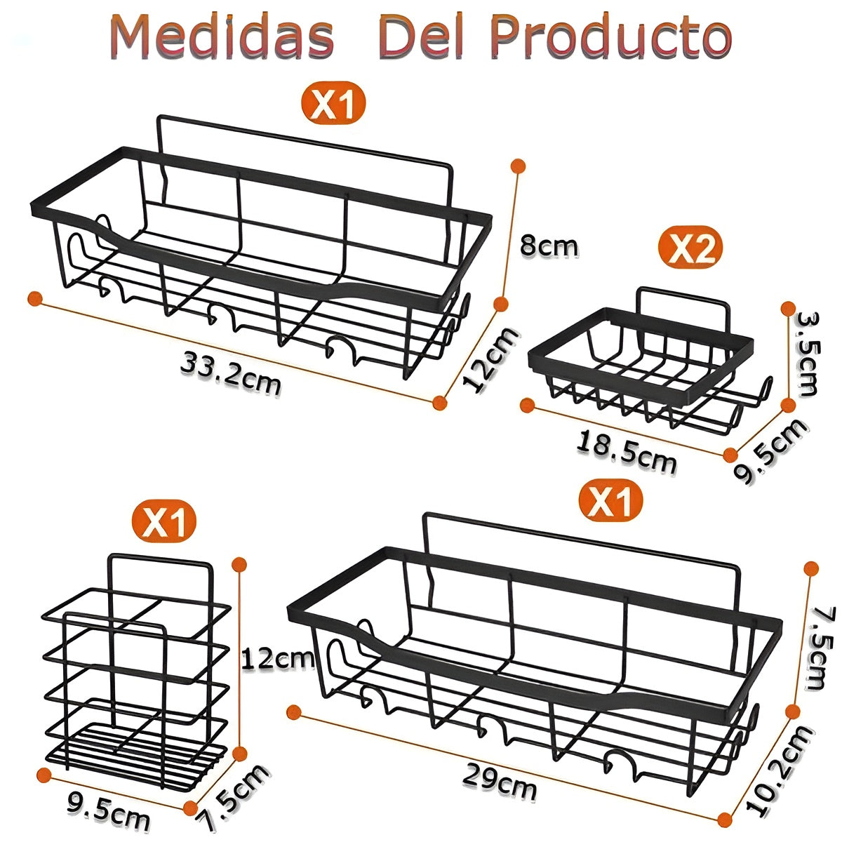 Transforma tu baño en un espacio organizado y elegante con el Set de Repisas Multifuncionales de 5 piezas. Este conjunto incluye una bandeja metálica de diseño moderno, que se instala fácilmente en la pared y optimiza cada rincón del ambiente. Su estructura incorpora ganchos inferiores para colgar esponjas, toallas y otros accesorios, maximizando la funcionalidad sin sacrificar el estilo.