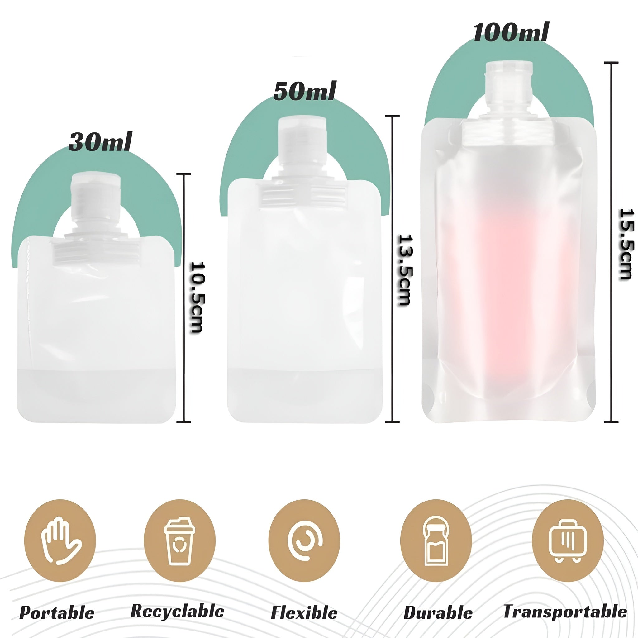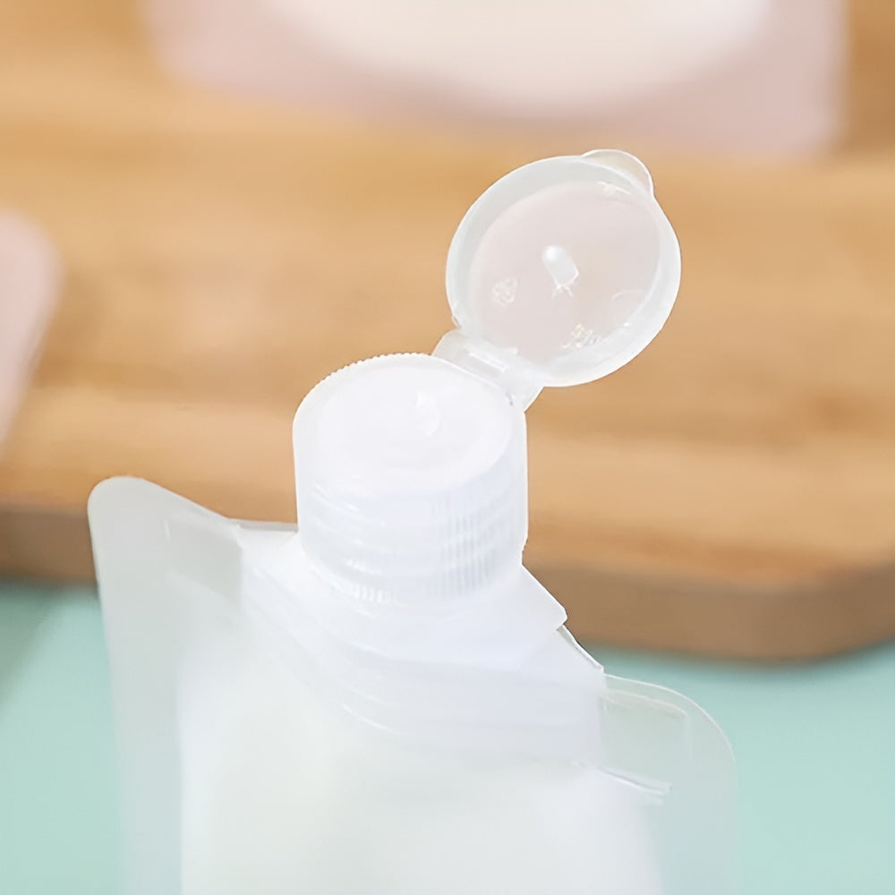 Cada botella cuenta con una tapa abatible firme y segura, que se mantiene cerrada incluso en movimiento, garantizando una experiencia sin fugas. Su tamaño compacto las hace perfectas para viajes, gimnasio, oficina o simplemente para organizar tus productos en casa.