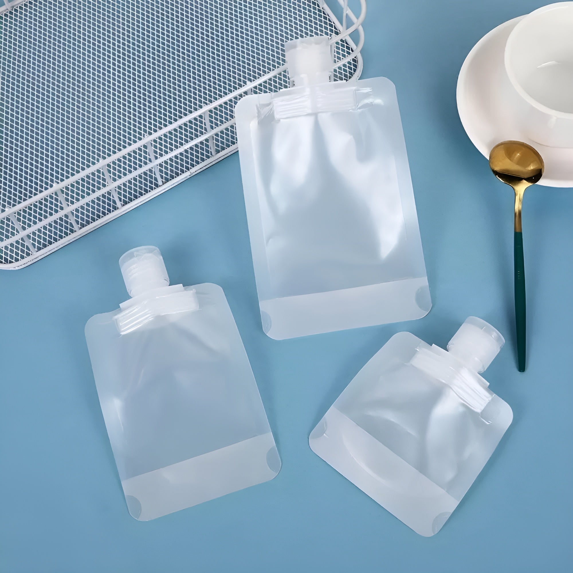 Fabricadas con material PET/PA/PE de alta calidad, estas bolsas exprimibles ofrecen excelente hermeticidad, son impermeables y resistentes al uso prolongado. El diseño de boquilla con tapa de cubierta asegura una alta estanqueidad, evitando que el líquido se filtre incluso después de apretar.