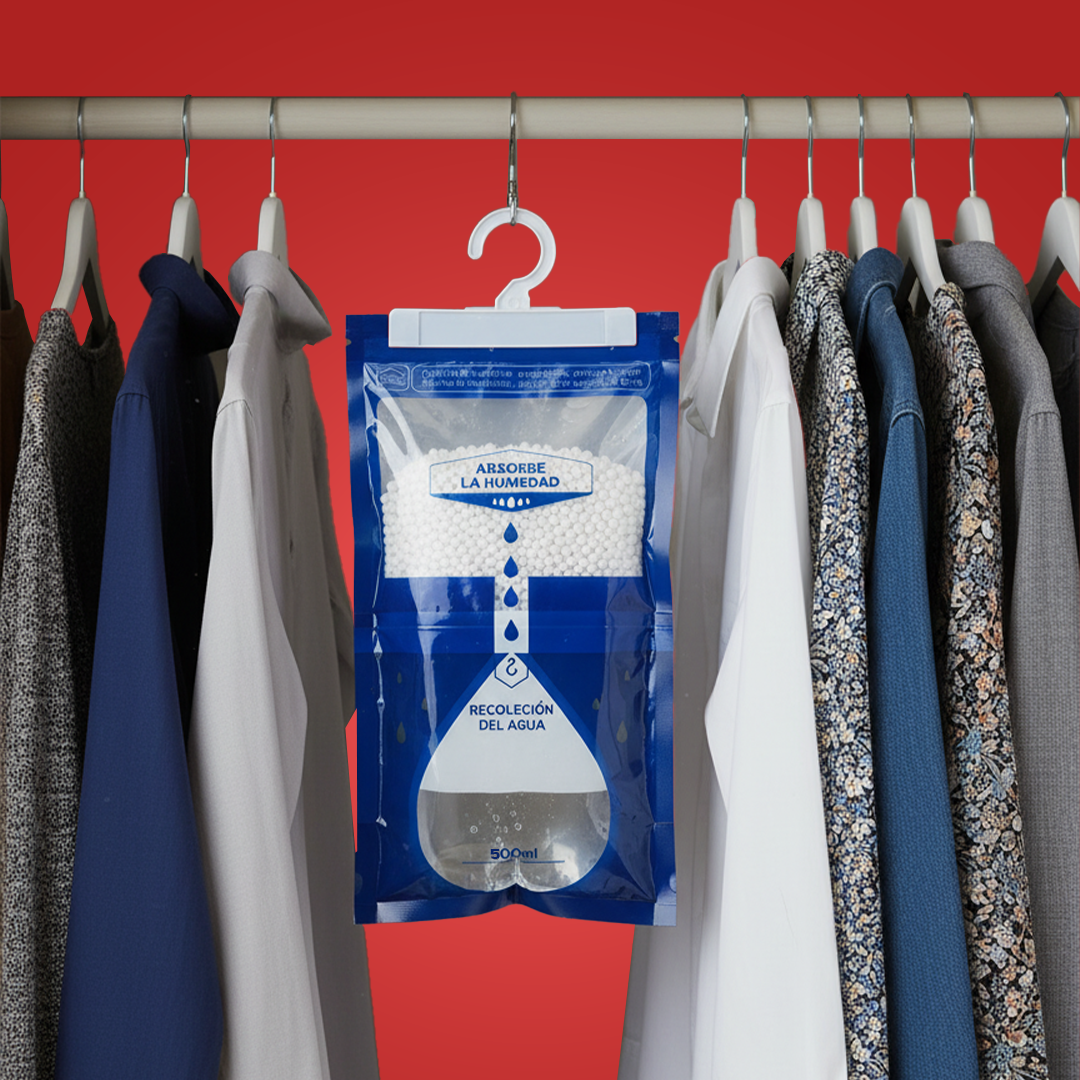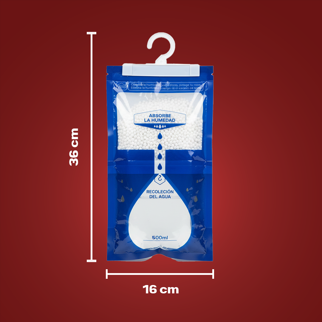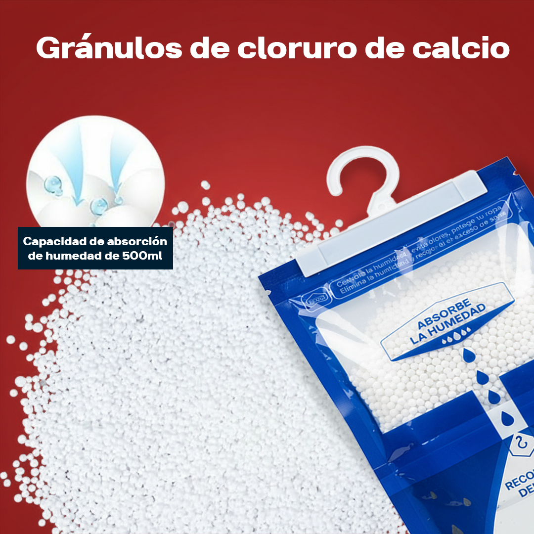 ¿Cómo funcionan? Fabricadas con gránulos de cloruro de calcio, absorben activamente la humedad del ambiente y la convierten en líquido dentro de la bolsa, dejando tu espacio fresco, seco y libre de olores.