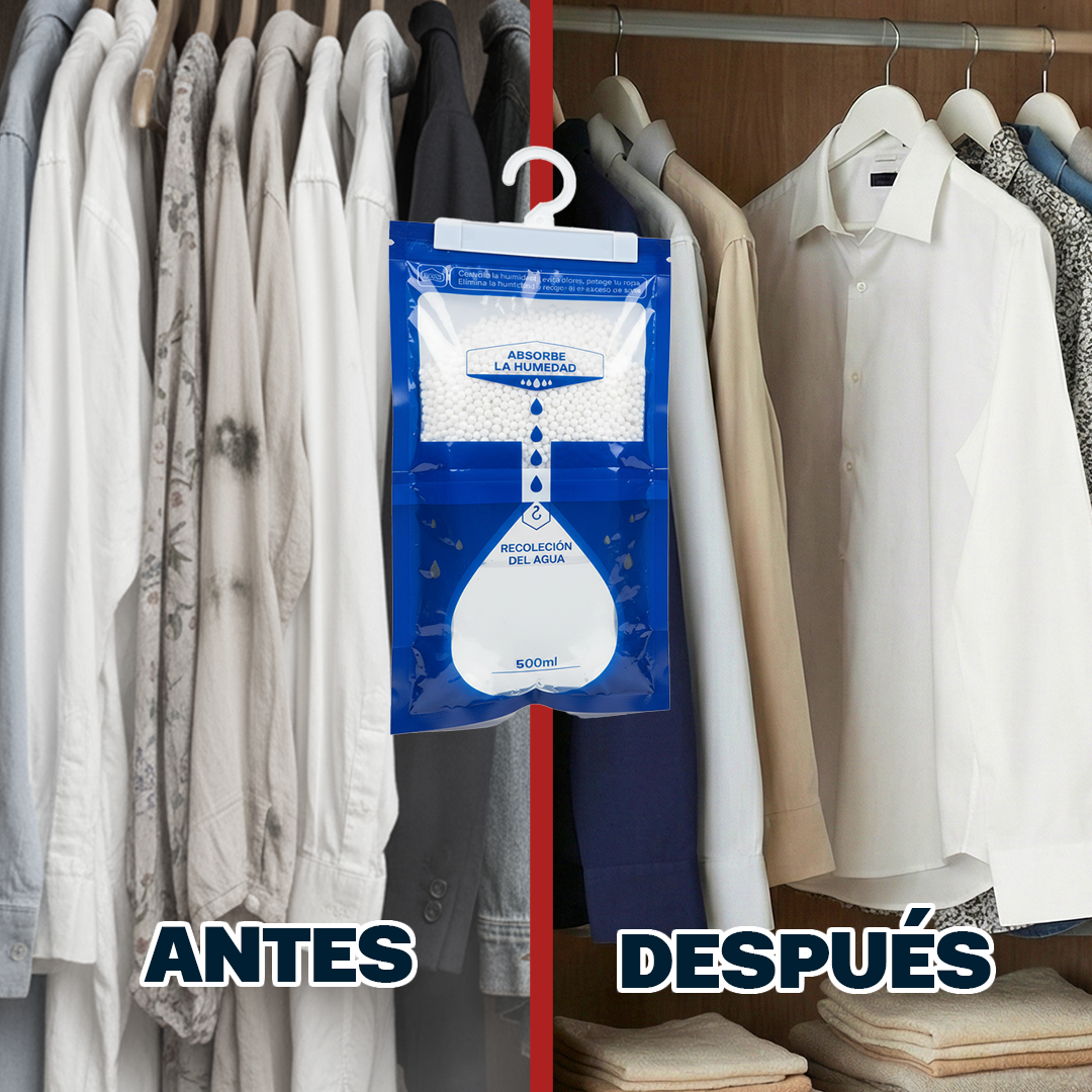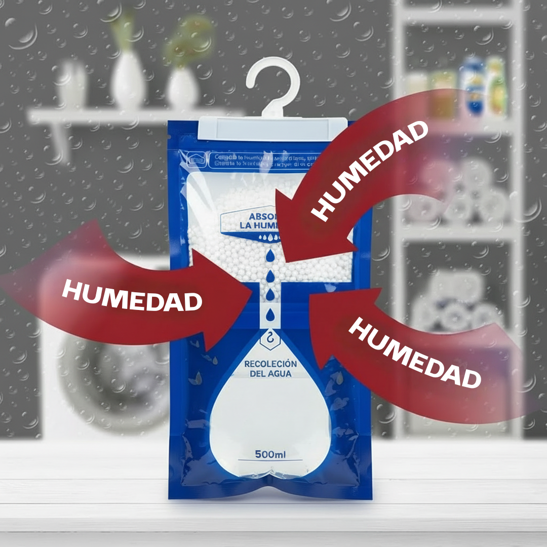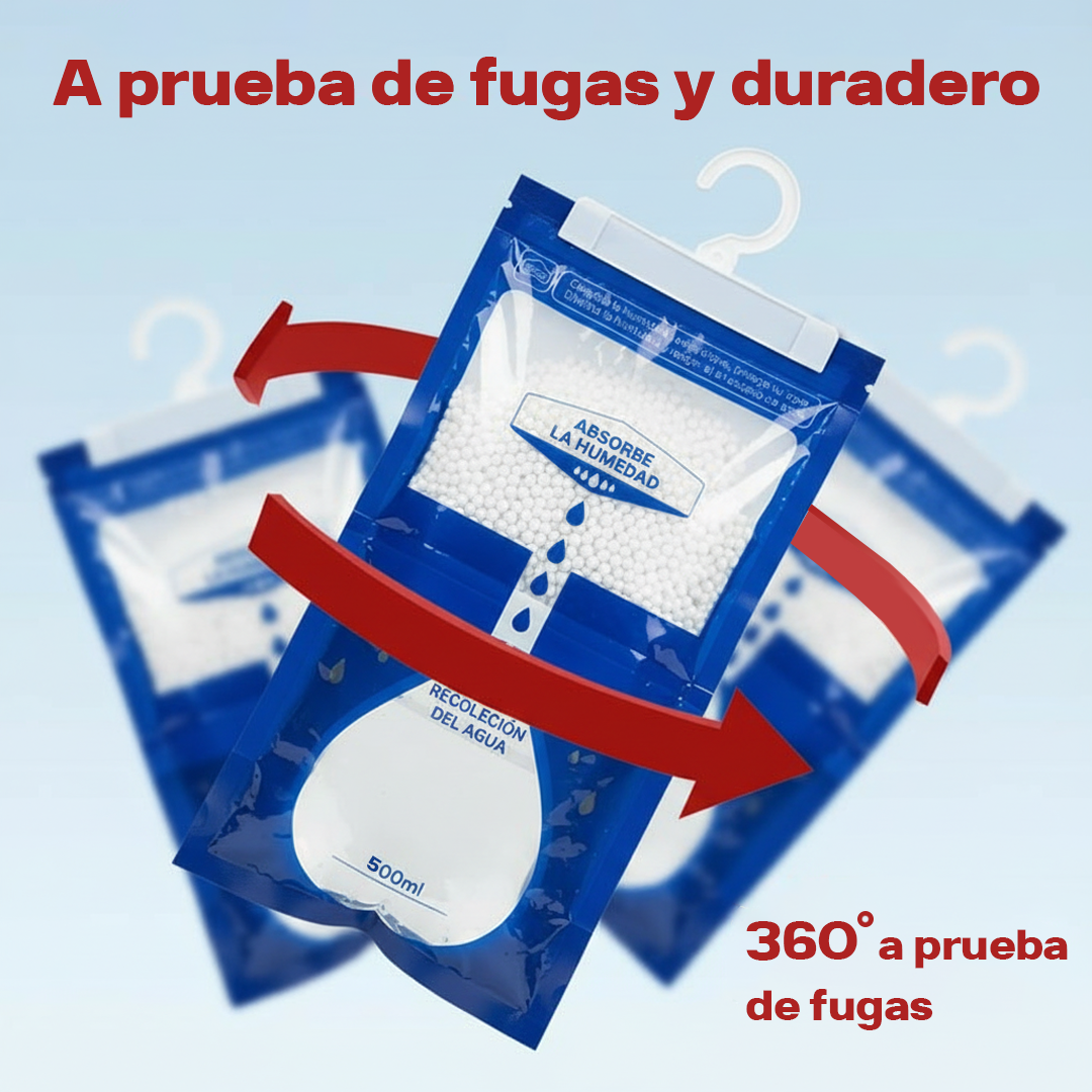 ¿Cómo funcionan? Fabricadas con gránulos de cloruro de calcio, absorben activamente la humedad del ambiente y la convierten en líquido dentro de la bolsa, dejando tu espacio fresco, seco y libre de olores.