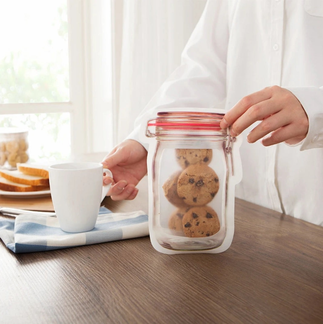 Fácil de sellar y a prueba de fugas estas bolsas con cierre de cremallera para tarros Mason con diseño de doble sello, que están completamente aisladas del flujo de gas interno y externo. El buen rendimiento de sellado puede mantener frescos los alimentos en el interior.