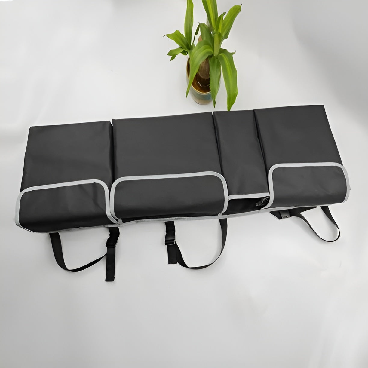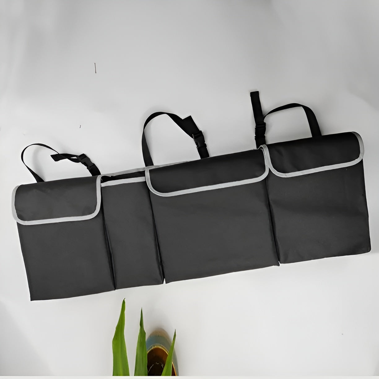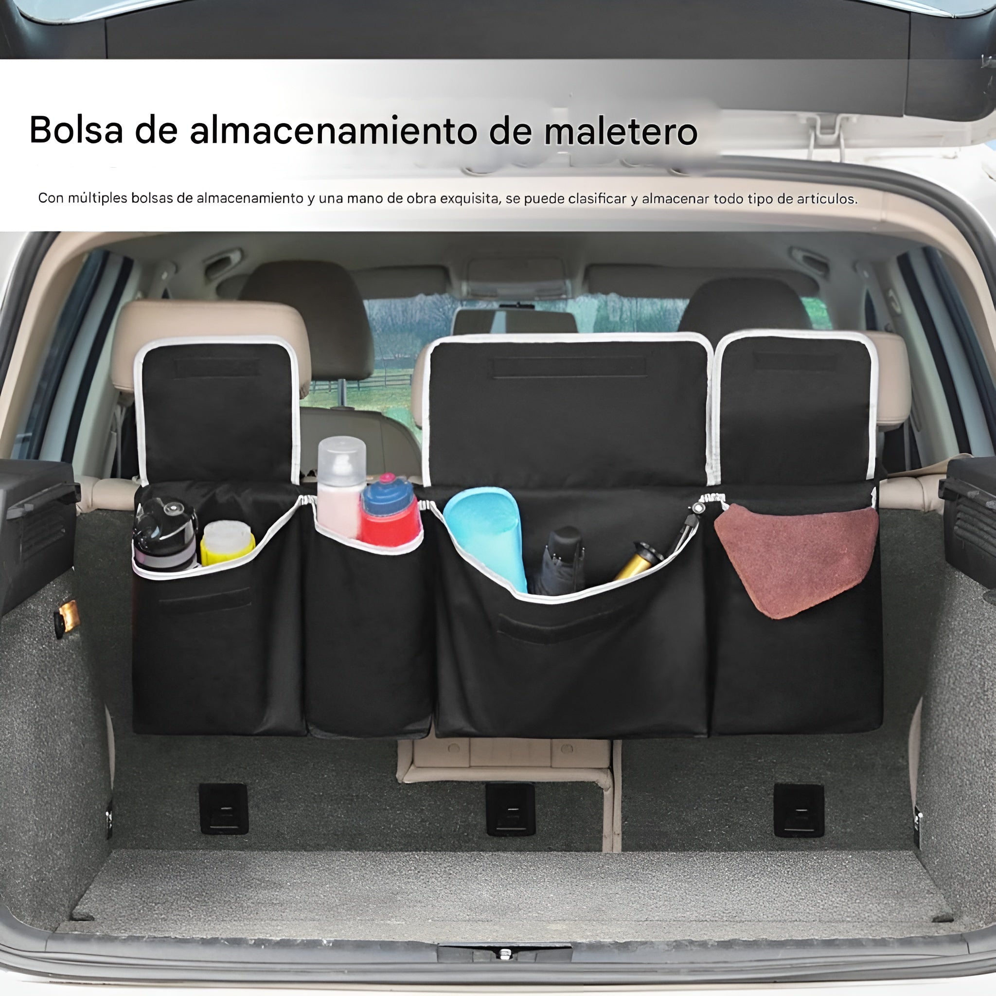 Transforma tu maletero en un espacio ordenado, práctico y elegante con el organizador para maletero. Diseñado para quienes valoran la funcionalidad sin sacrificar estilo, completamente el respaldo, adaptándose a la mayoría de los carros sin interferir con el confort de los pasajeros.