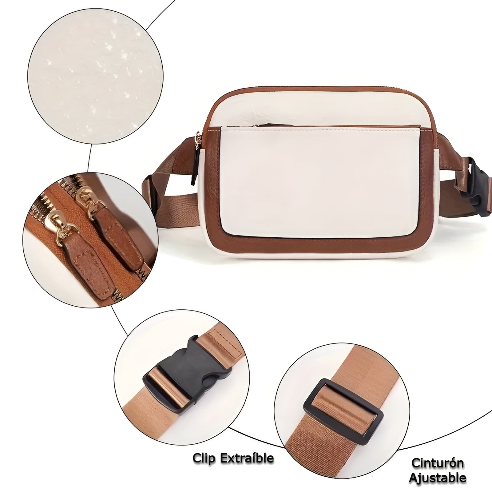 Espacio práctico para lo esencial: Su diseño compacto pero funcional incluye dos compartimentos con cierre en la bolsa principal y un bolsillo frontal con cierre, ofreciendo suficiente espacio para organizar