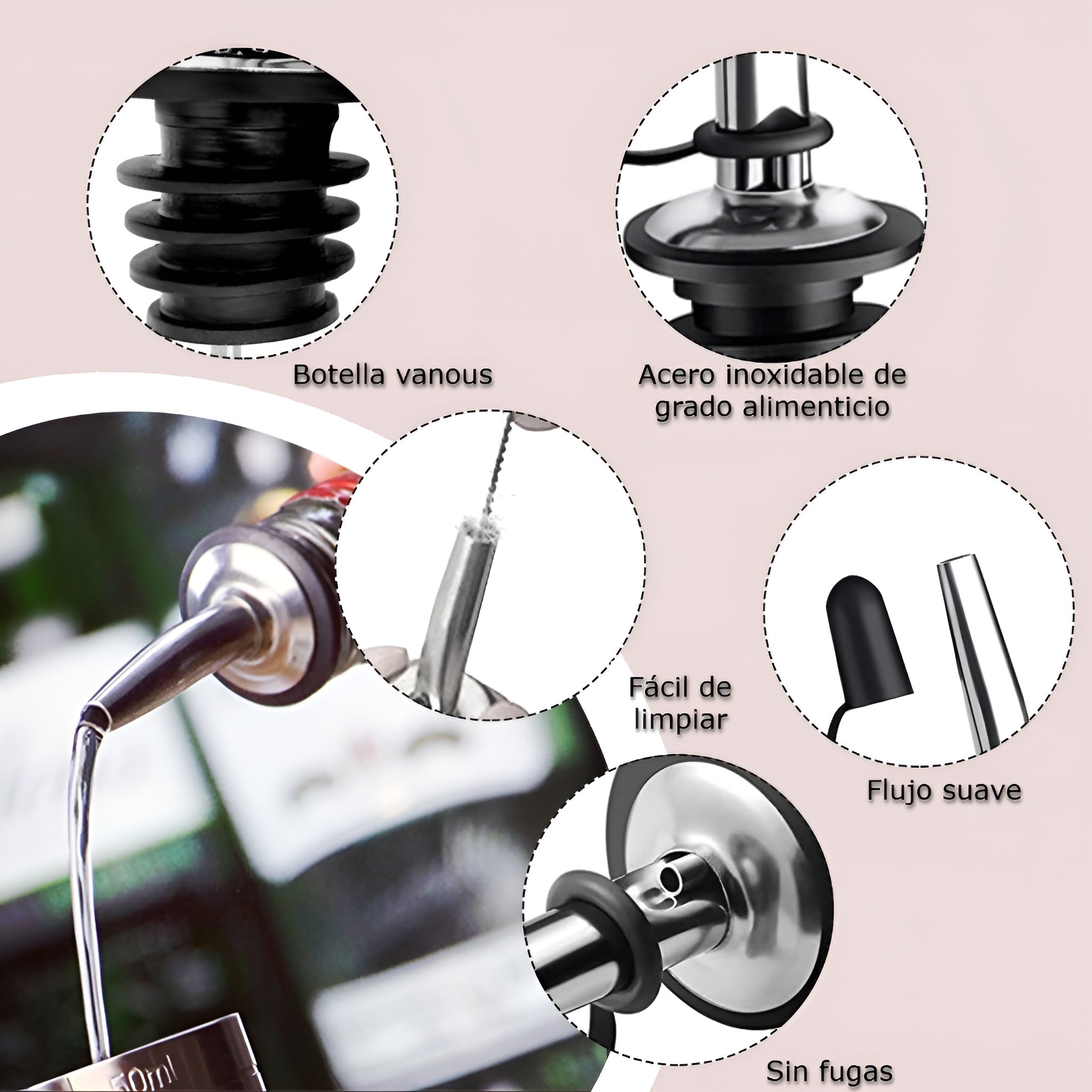 Vertido limpio y uniforme El diseño cónico ofrece control total y velocidad constante al verter, reduciendo derrames en botellas de licor, jarabe, vinagre, aceite y más.