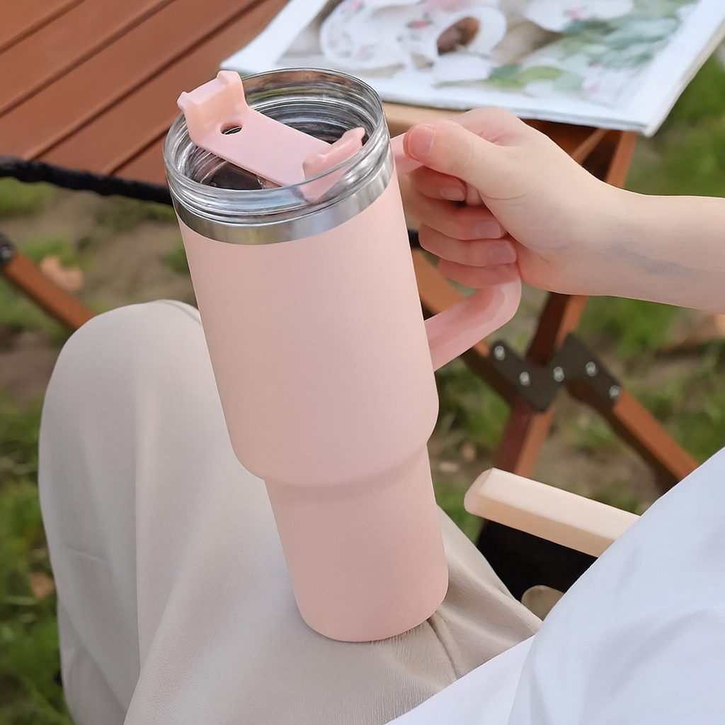 Diseño antifugas y cómodo Con capacidad de 40 onzas, incluye una tapa segura y asa resistente, lo que evita derrames incluso en trayectos irregulares o al aire libre.