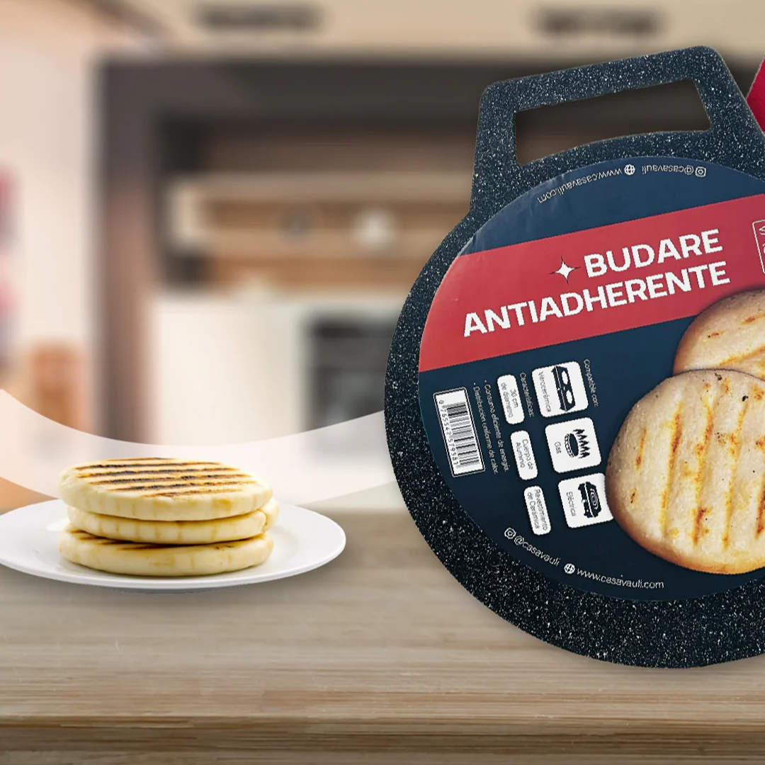 Leer más...El budare de 30 cm es el compañero ideal para preparar las recetas más auténticas de la cocina venezolana. Fabricado en aluminio de alta calidad con una base ferromagnética integrada y una superficie de cerámica antiadherente lisa, este budare distribuye el calor de manera uniforme, permitiendo cocinar arepas, cachapas, tortillas, panquecas. Su tamaño es ideal para cocinas domesticas de gas o electricas.