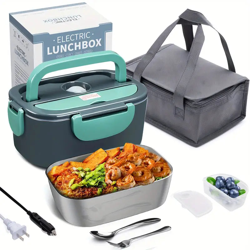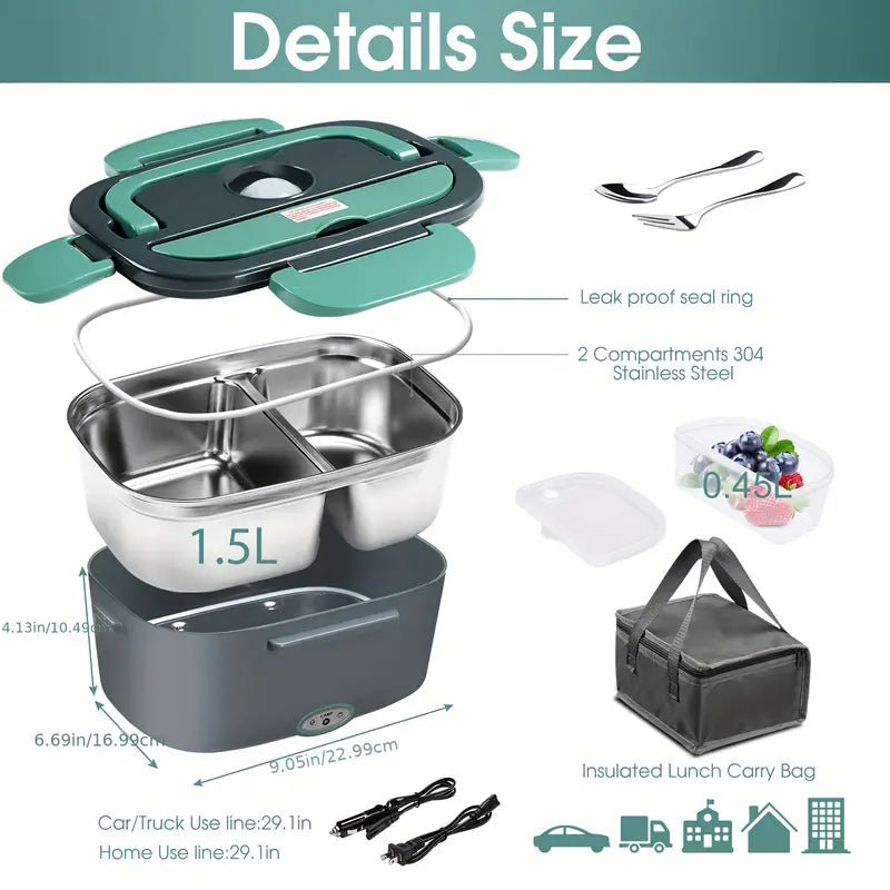 Lonchera Eléctrica ¿Cansado de comida fría o rápida? Olvídate del microondas y disfruta de un almuerzo casero caliente con nuestra lonchera de 60 W. Funciona en casa, oficina (110 V/220 V) y en tu coche o camión (12 V/24 V).