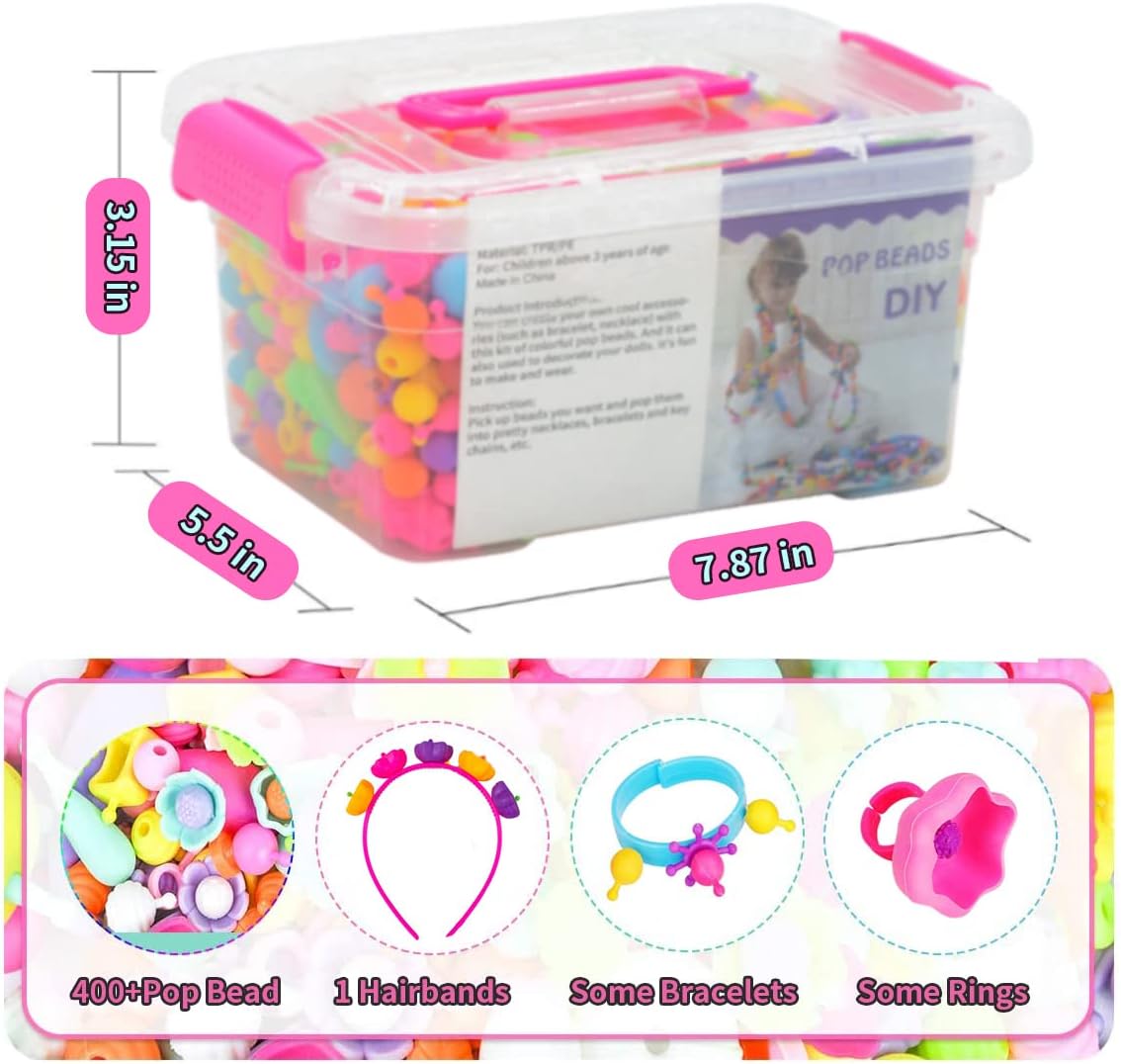 Juguetes duraderos y reutilizables: Este juego de cuentas ha sido diseñado para ser resistente y duradero. Las cuentas se conectan fácilmente mediante inserción, lo que facilita su desmontaje y montaje. Esto significa que podrás crear y recrear joyas una y otra vez, ¡sin límites para tu imaginación!