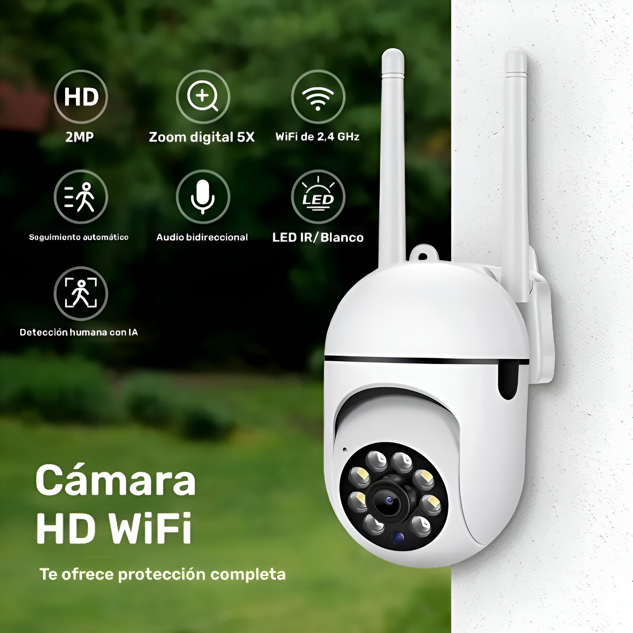 Refuerza la seguridad de tu hogar con esta cámara de vigilancia para exteriores, equipada con tecnología inteligente y monitoreo continuo las 24 horas del día. Ideal para quienes buscan protección confiable y control total desde cualquier lugar.