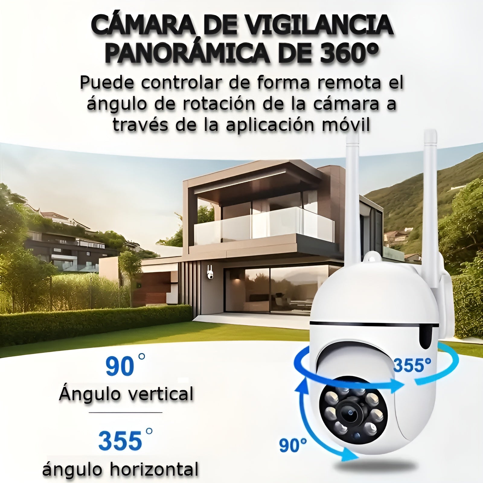 Su sistema PTZ ofrece una cobertura panorámica de 355° de rotación y 90° de inclinación, eliminando los puntos ciegos y garantizando una supervisión completa. Al detectar movimiento, activa una alarma sonora y luminosa que disuade intrusos de inmediato.