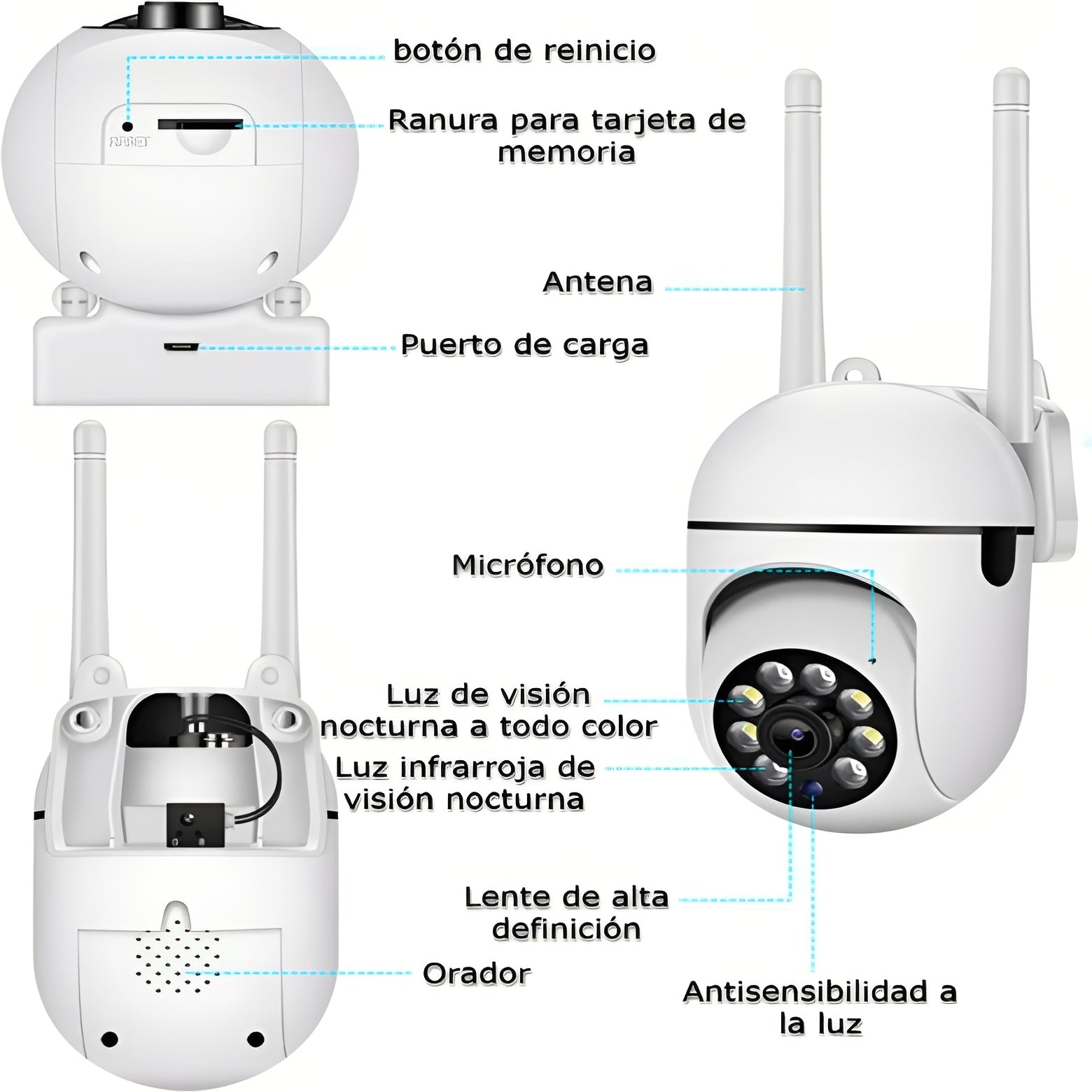 Disfruta de una visión nocturna nítida gracias a su resolución 1080p y zoom digital 4x, con focos LED e infrarrojos que permiten identificar detalles incluso en la oscuridad.
