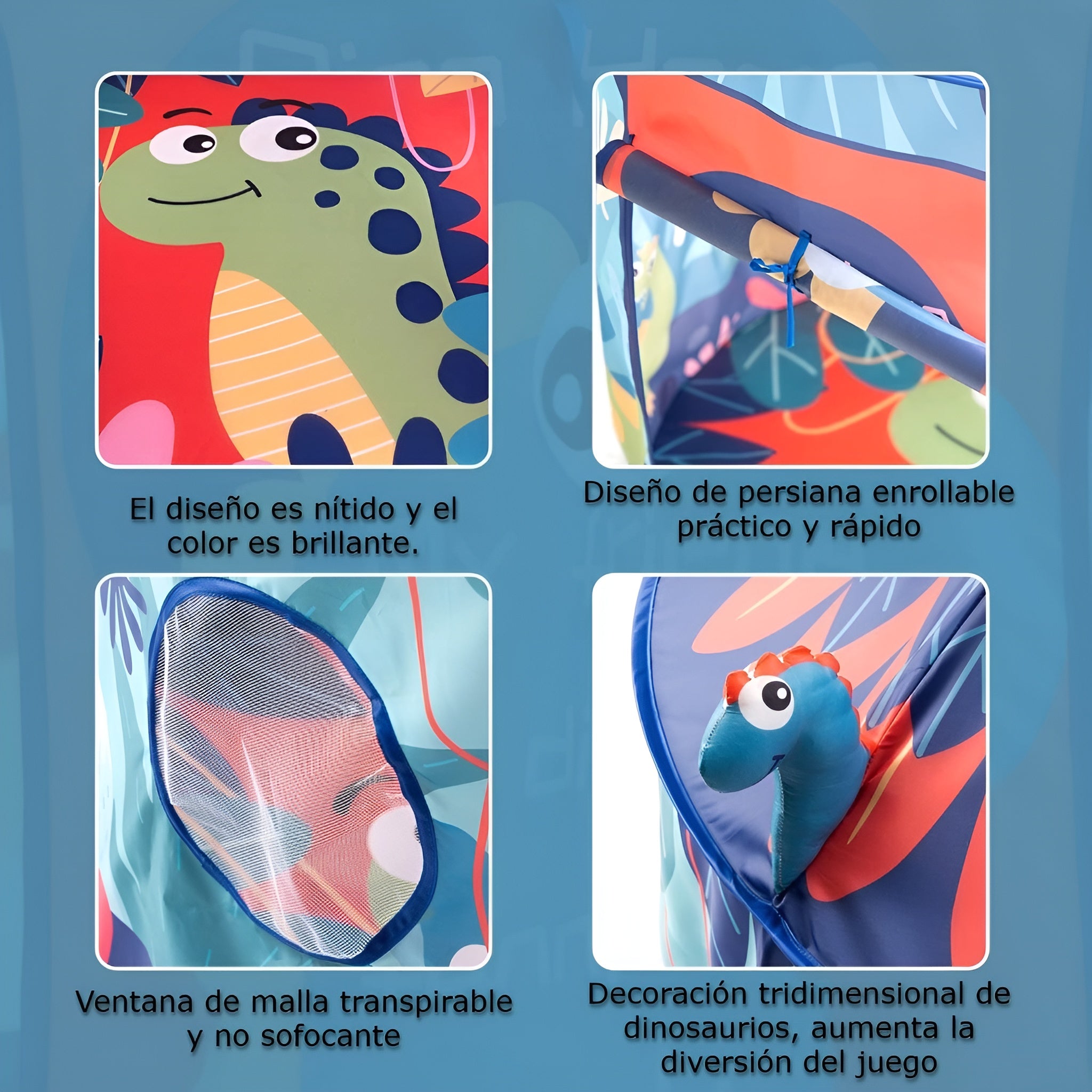 El llamativo diseño de dinosaurios fascinará a los pequeños exploradores, mientras que sus materiales de alta calidad garantizan durabilidad y seguridad. Fabricada en poliéster resistente y soportes de plástico ABS, es inodora, suave al tacto, transpirable y fácil de limpiar, ofreciendo un entorno seguro sin riesgos de rasguños ni sustancias nocivas.