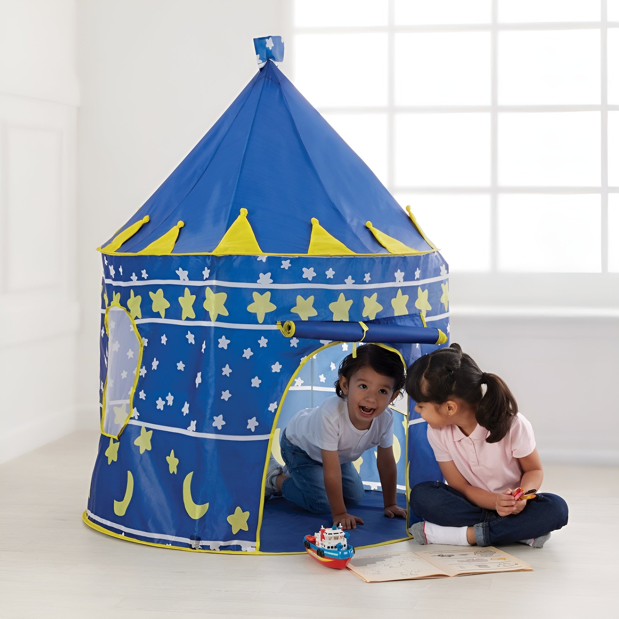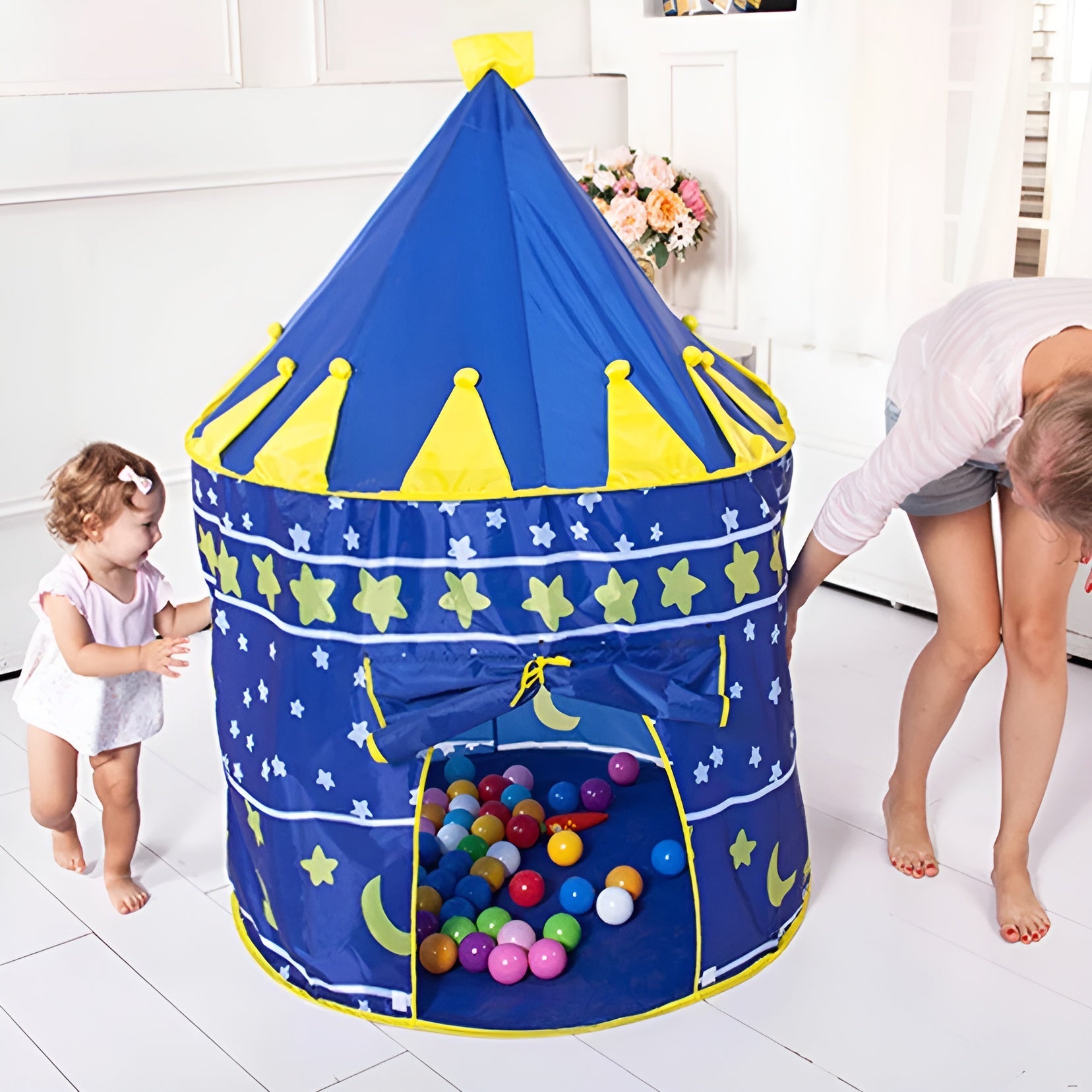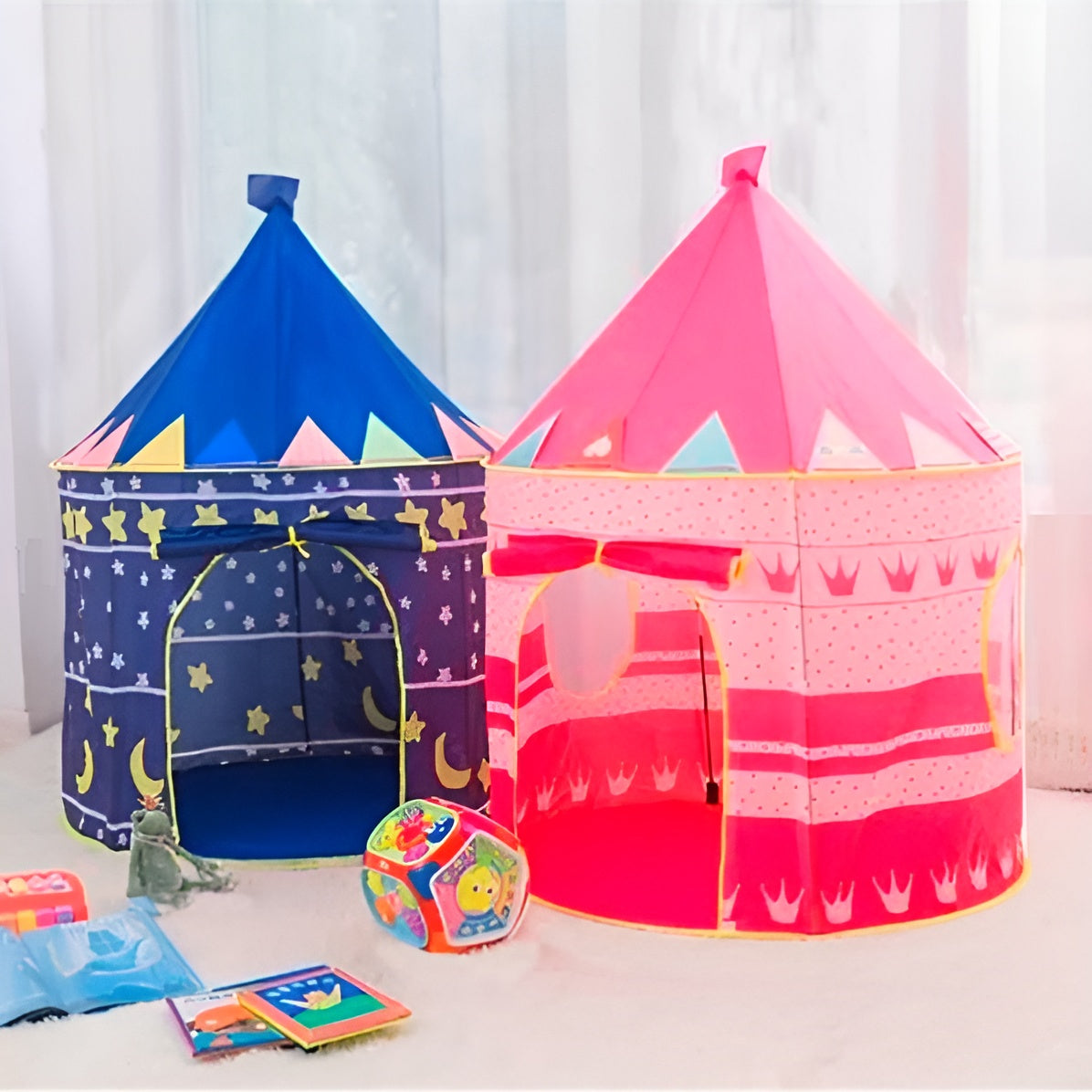 Inspirada en los castillos de cuento de hadas, esta carpa puede alojar hasta 3 niños al mismo tiempo, cumpliendo el sueño de toda princesa. Es el lugar ideal para que los niños se entretengan, lean y se relajen, creando su propio pequeño reino.