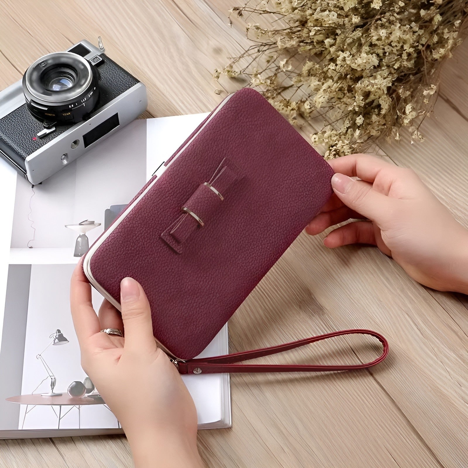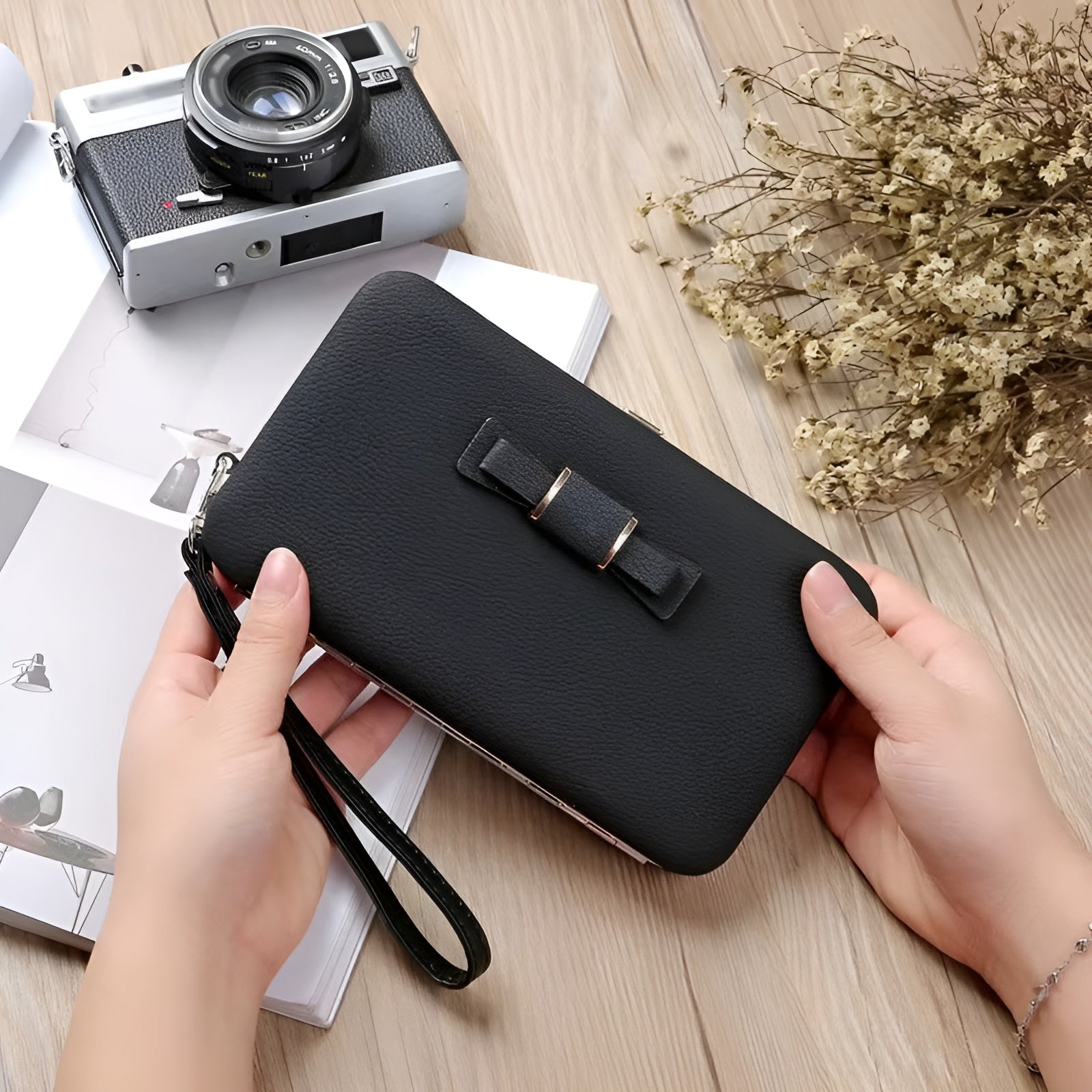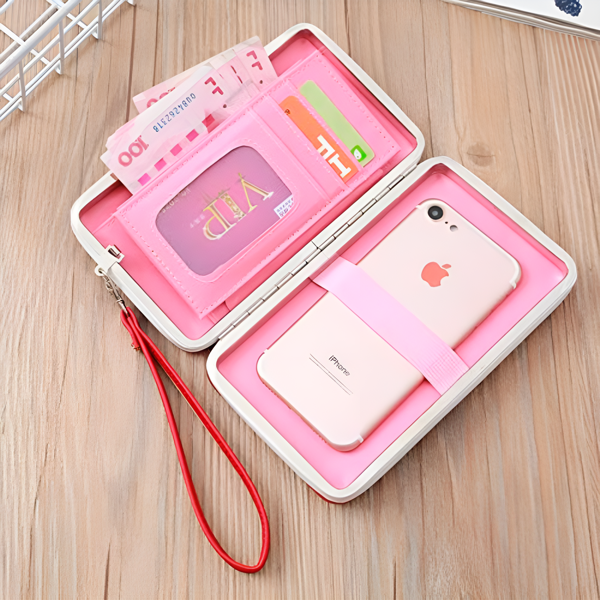 Diseñada para teléfonos de hasta 6 pulgadas o 15 cm, esta cartera cuenta con gran capacidad y múltiples funciones: puede usarse como bolso de mano, bolsa de muñeca o clutch, adaptándose a diferentes estilos y ocasiones. Su estructura inteligente incluye 3 ranuras para tarjetas de crédito, 1 ventana de identificación, 1 bolsillo con cremallera, 1 compartimento para dinero y un espacio exclusivo para el teléfono.