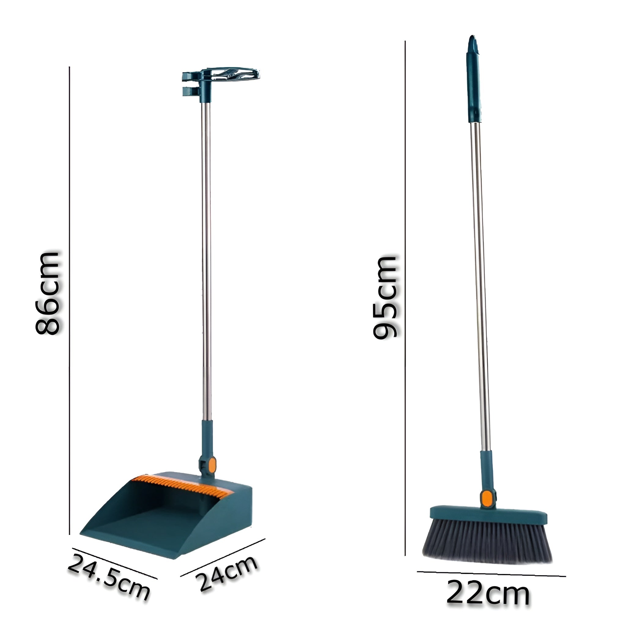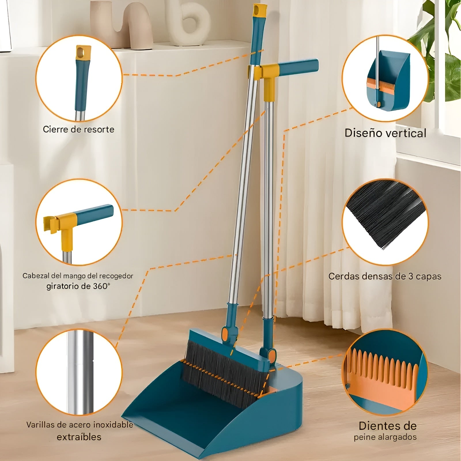 Fabricado con plástico ABS de alta resistencia y mango de acero inoxidable, este juego combina ligereza y durabilidad. Las cerdas de la escoba están hechas de material sintético flexible, ideal para atrapar residuos sin dañar las superficies. Una herramienta confiable para mantener su entorno limpio con el menor esfuerzo.