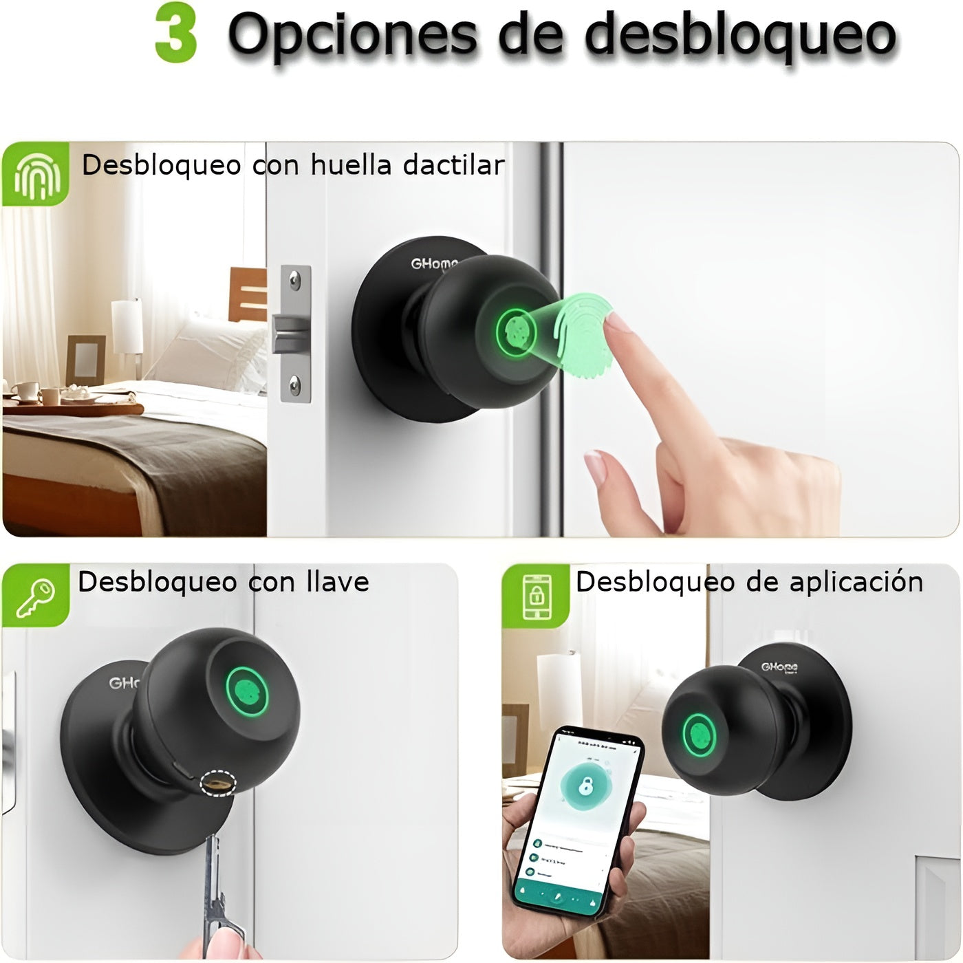 Aumenta la seguridad y comodidad de tu hogar con esta perilla de puerta inteligente GHome Smart, que combina diseño moderno, acceso biométrico y control digital en un solo dispositivo confiable. Ideal para dormitorios, oficinas o apartamentos, ofrece funciones avanzadas sin complicaciones.