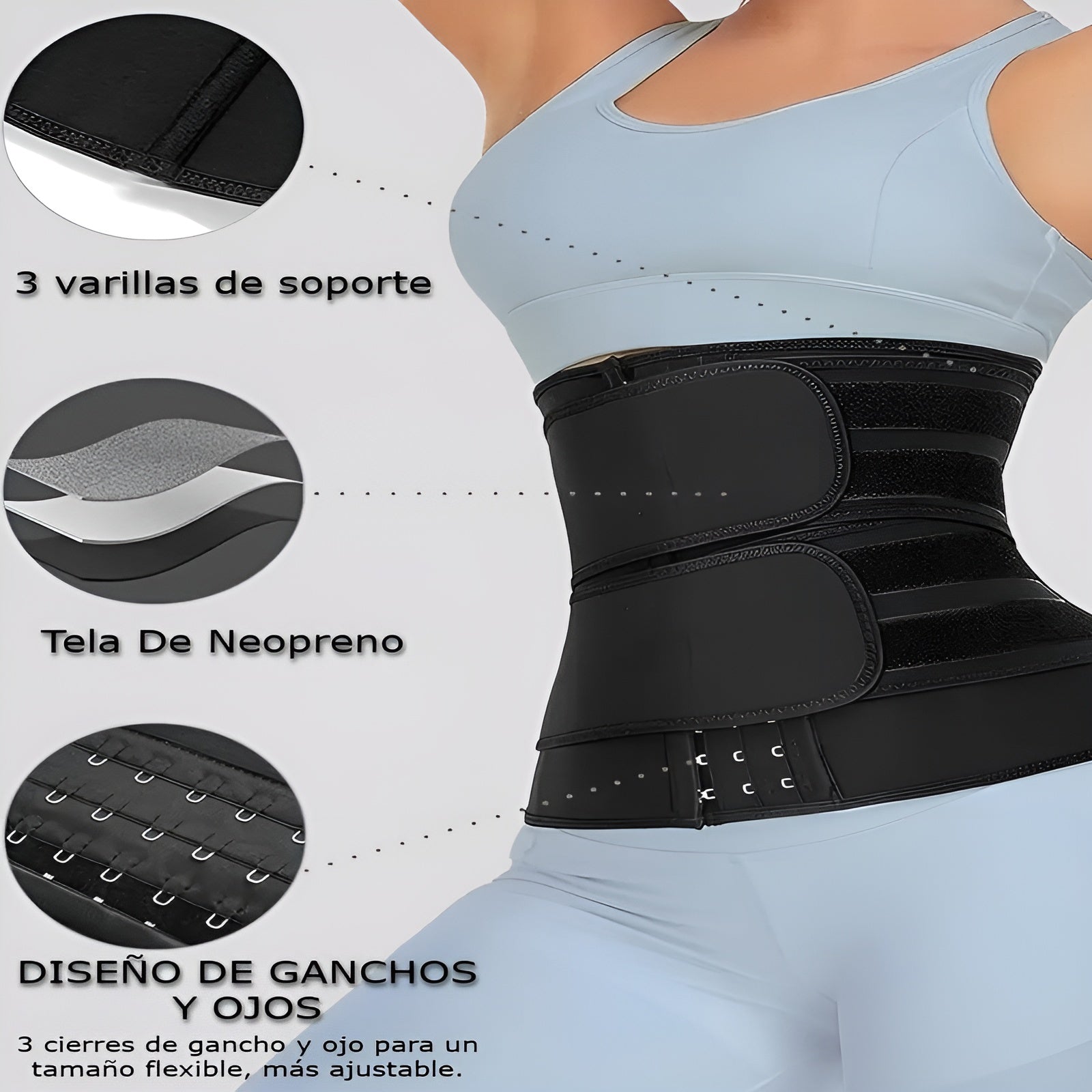 Durante el ejercicio, este corsé térmico aumenta el calor corporal, acelera la quema de grasa abdominal y promueve la sudoración, ayudando a eliminar toxinas y quemar calorías de forma más eficiente. Además, su diseño lateral favorece el realce del busto, redirigiendo la grasa hacia el centro y mejorando la línea del cuerpo.