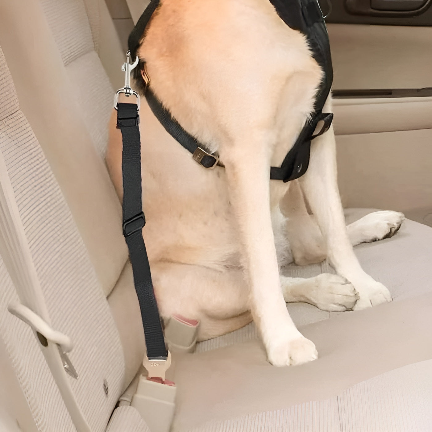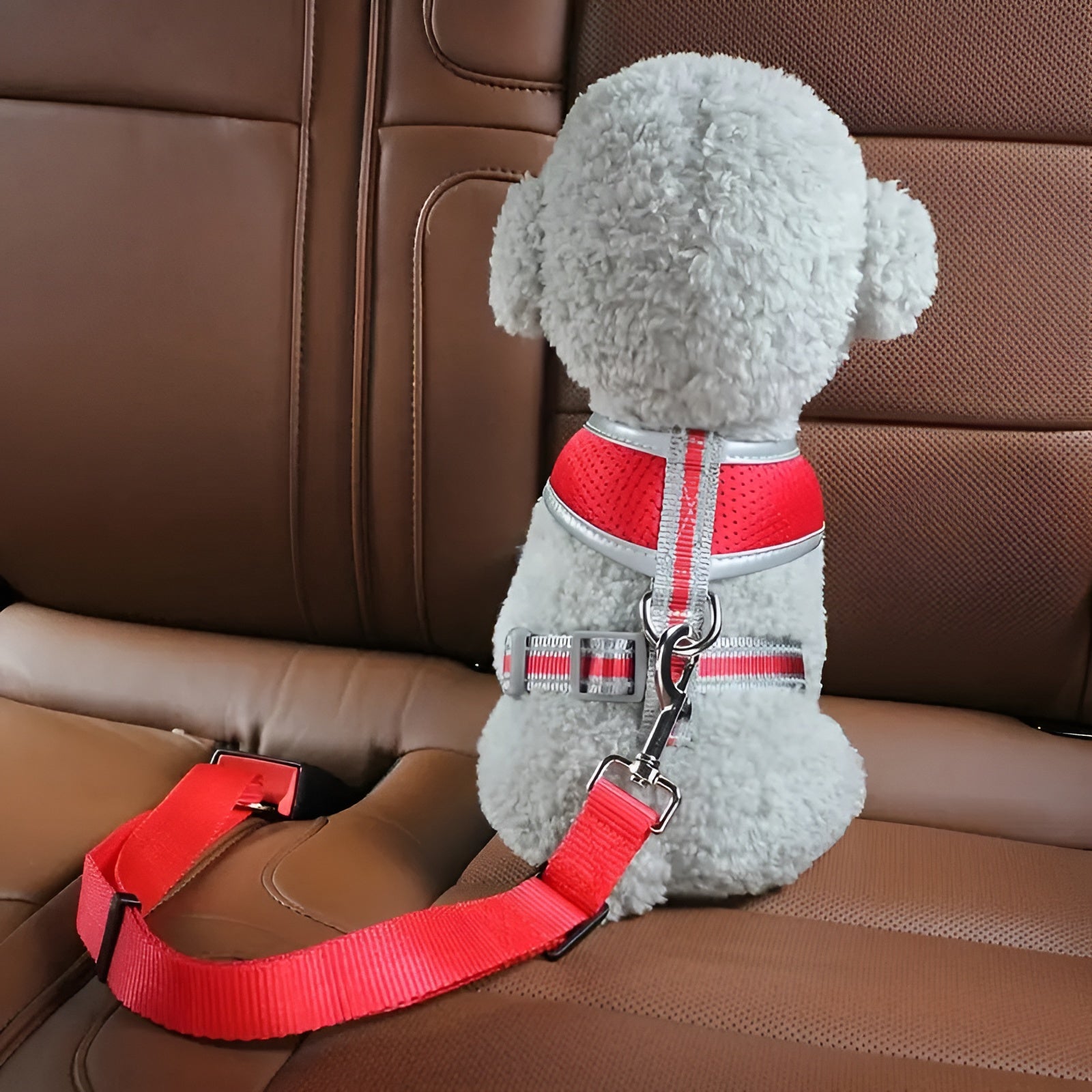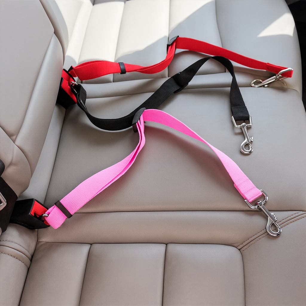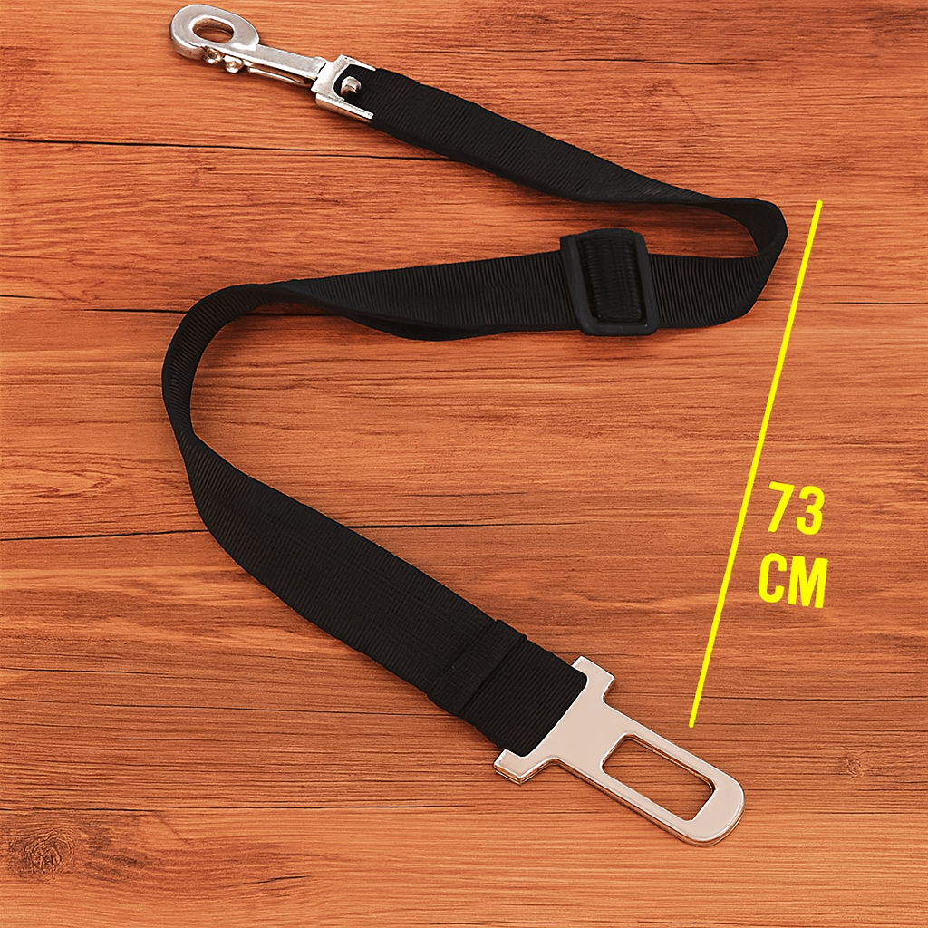El cinturón de seguridad para mascota está elaborado en nailon de alta calidad, un material resistente que garantiza durabilidad incluso con uso constante. Su cierre de acero inoxidable aporta firmeza y seguridad, manteniendo un diseño simple, limpio y con una excelente calidad de fabricación que destaca por su resistencia y acabado fino.