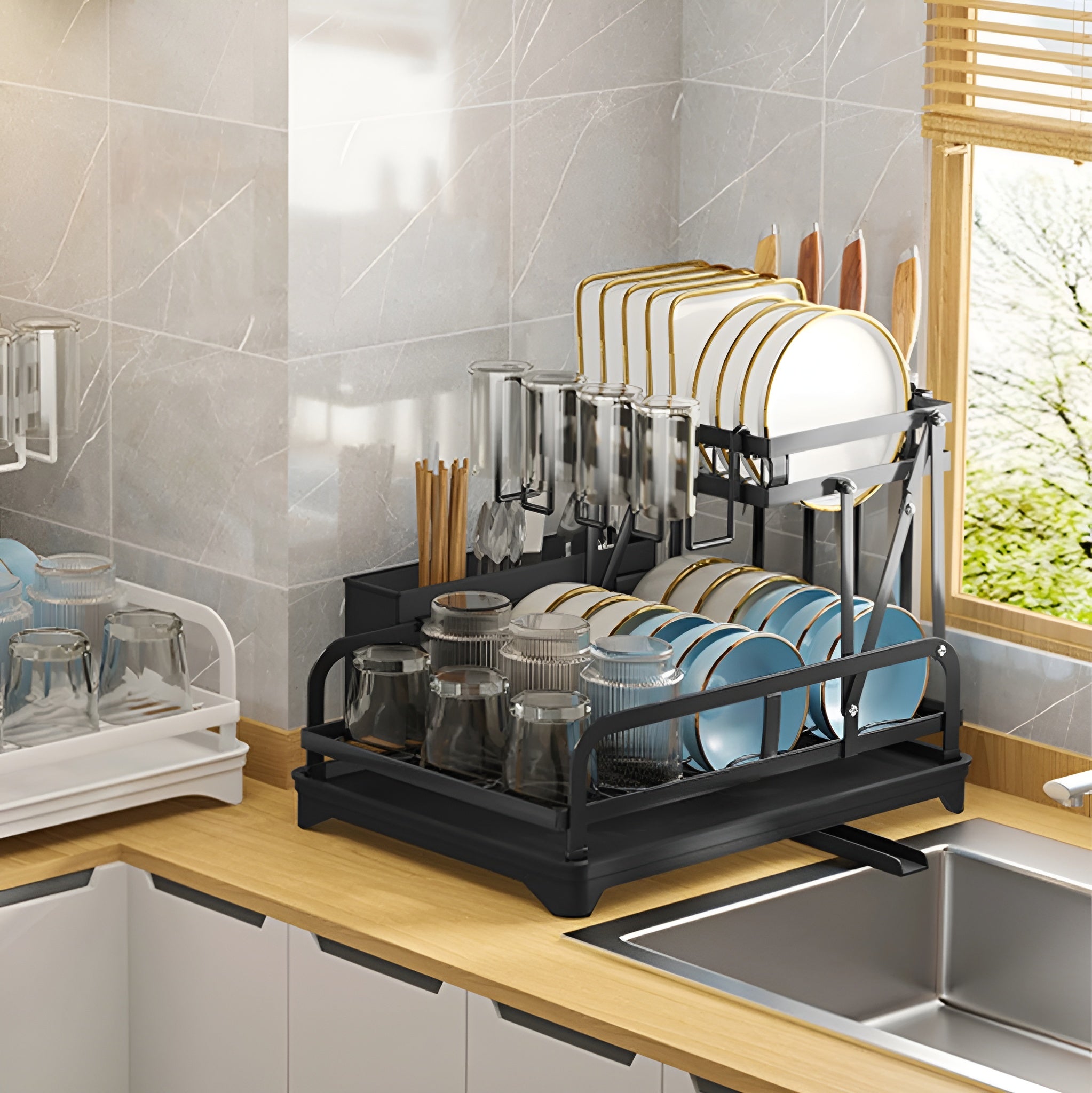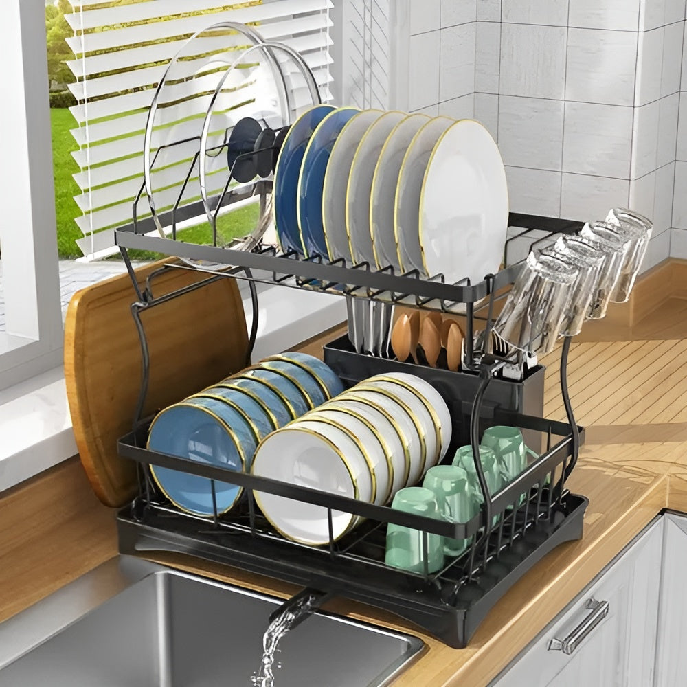 Leer más...El Escurridor de Platos de Gran Capacidad es la solución ideal para quienes buscan organización, funcionalidad y estilo en su cocina. Con un diseño de 2 niveles y una estructura inteligente, permite almacenar platos, tazones, cuchillos, vasos, ollas y más, optimizando cada centímetro de tu encimera.