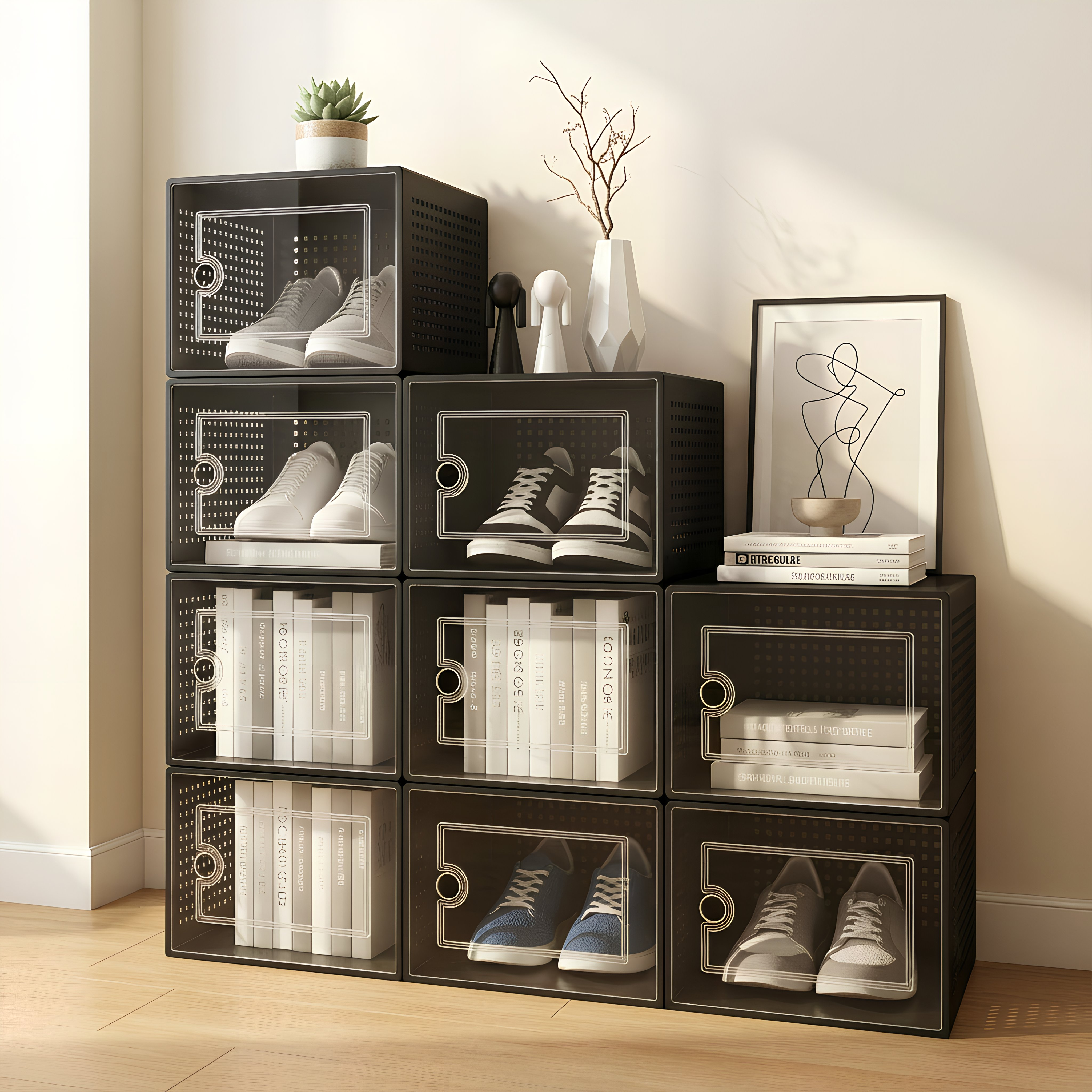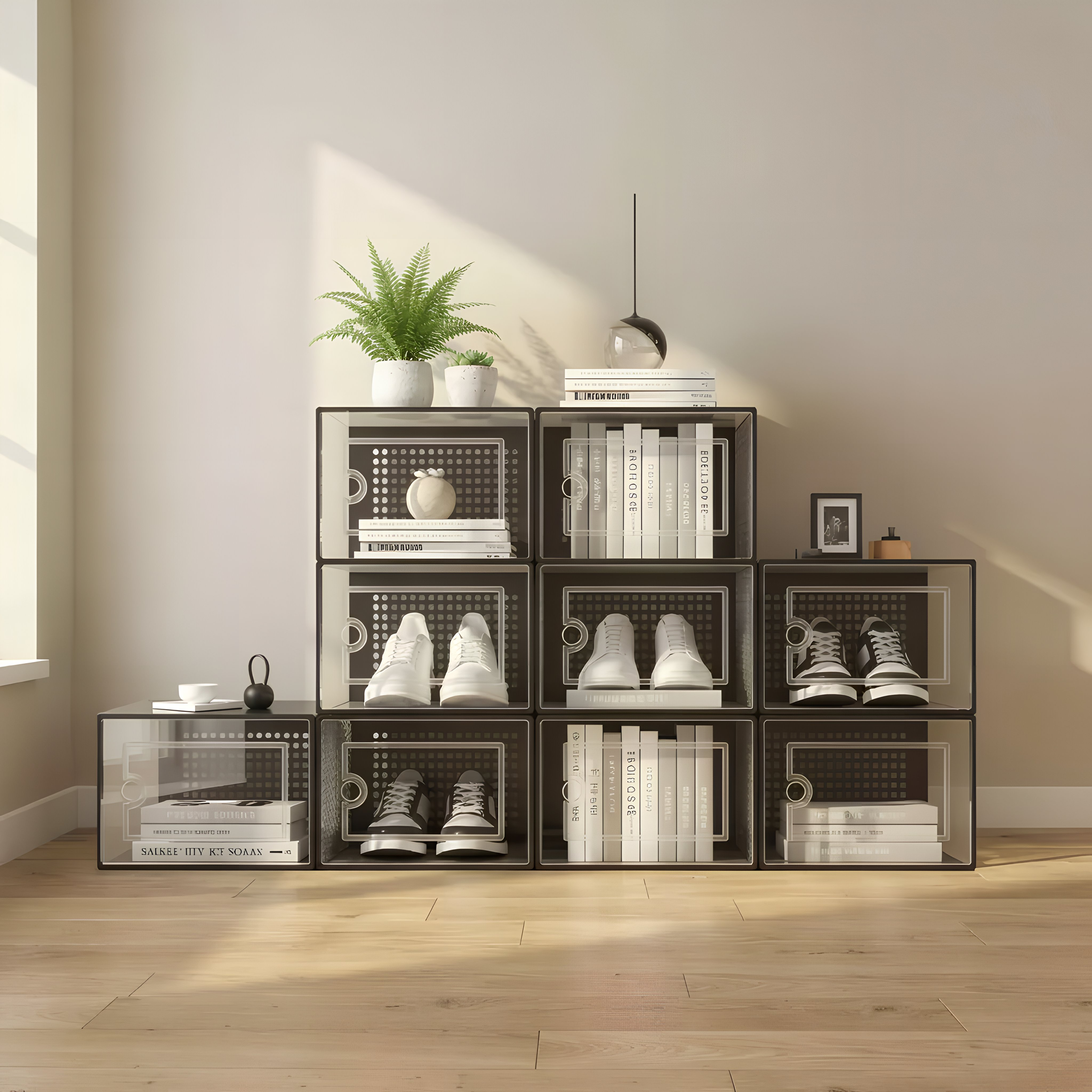 Libera espacio y mantén tus zapatos siempre ordenados con nuestra Estantería Apilable de 9 cubos, la solución práctica y moderna que tu hogar necesita. Su diseño modular permite adaptarse a distintos espacios y estilos, brindando una organización eficiente sin sacrificar el buen gusto.