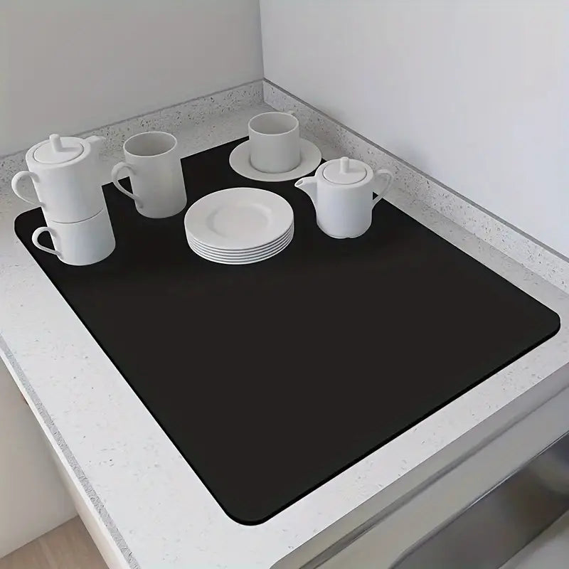 Fabricada con poliéster, esponja y satén de algodón, esta alfombrilla de secado ofrece alta absorción de agua, es reversible, lavable y resistente a la decoloración.