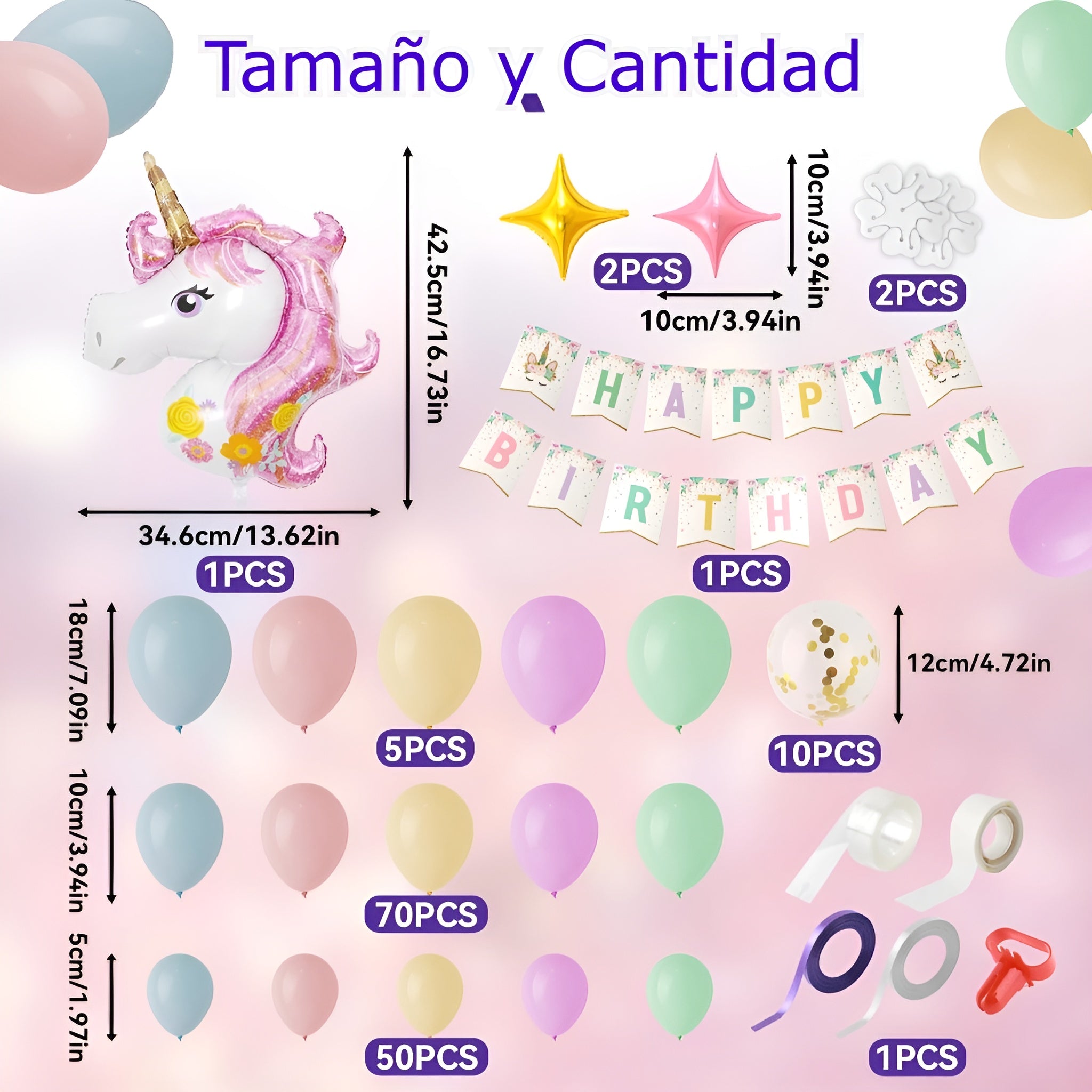 Convierte tu celebración en un verdadero cuento de hadas con nuestro Set de Globos Unicornio de 147 piezas, diseñado para llenar de color, fantasía y alegría cualquier evento especial. Ideal para cumpleaños, baby showers, fiestas temáticas o cualquier ocasión que merezca un toque mágico.