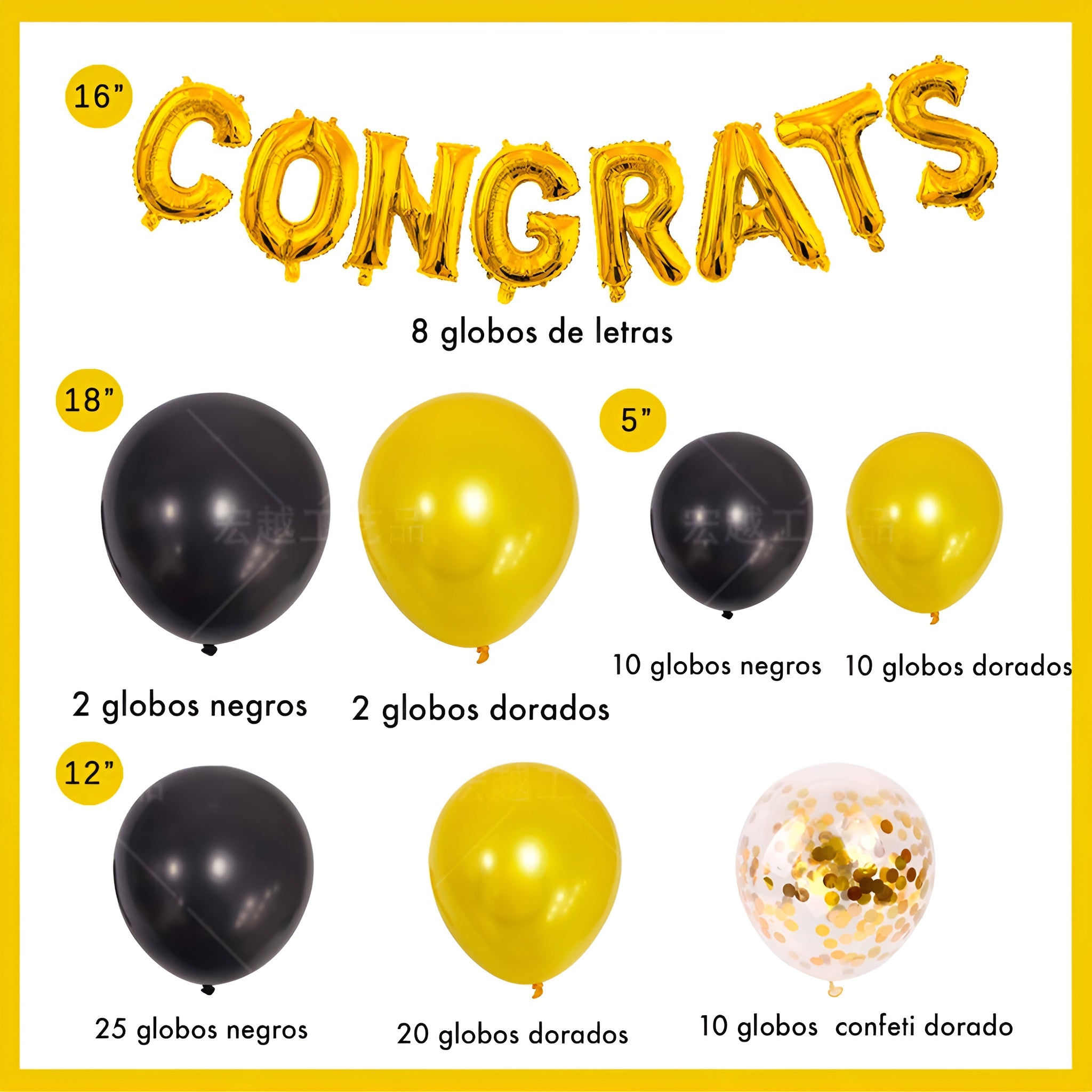 Este kit es perfecto para graduaciones de secundaria, universidad o eventos académicos especiales, y su versatilidad te permite adaptarlo a distintos estilos decorativos, desde lo más moderno hasta lo más clásico. Además, incluye una cinta para facilitar el armado de arcos, centros de mesa o fondos para fotos.