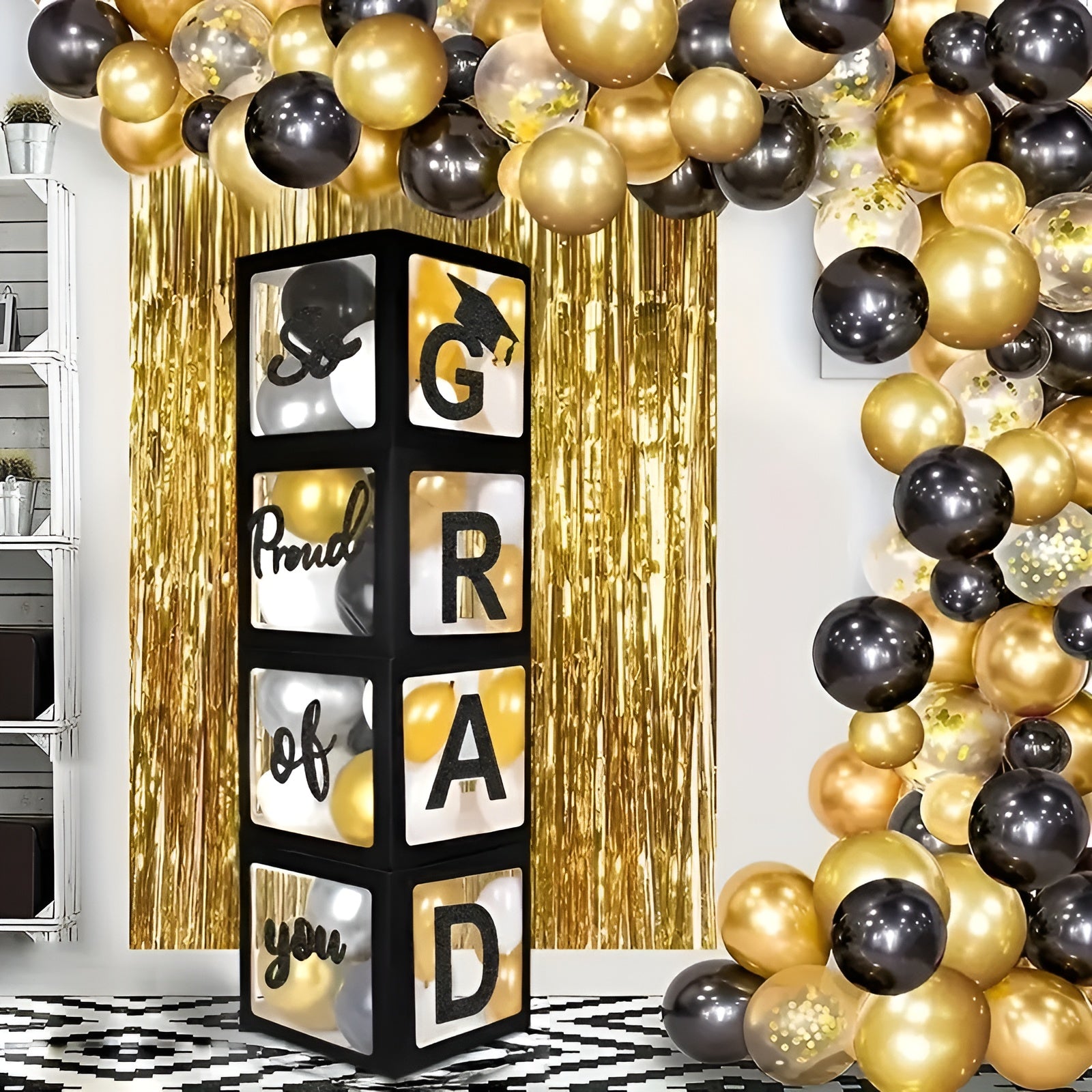Haz que tu celebración de graduación brille con elegancia y personalidad con el Kit de Globos de Graduación en negro y dorado, una combinación clásica que nunca pasa desapercibida. Diseñado para transformar cualquier espacio en un ambiente festivo y sofisticado, este set es ideal para quienes desean destacar ese momento tan especial con estilo y sin complicaciones.