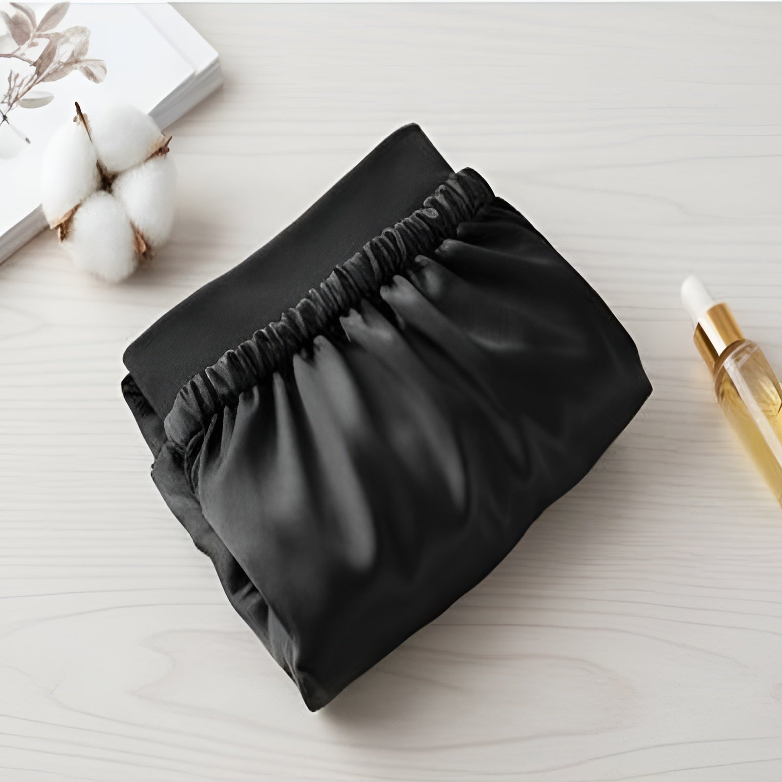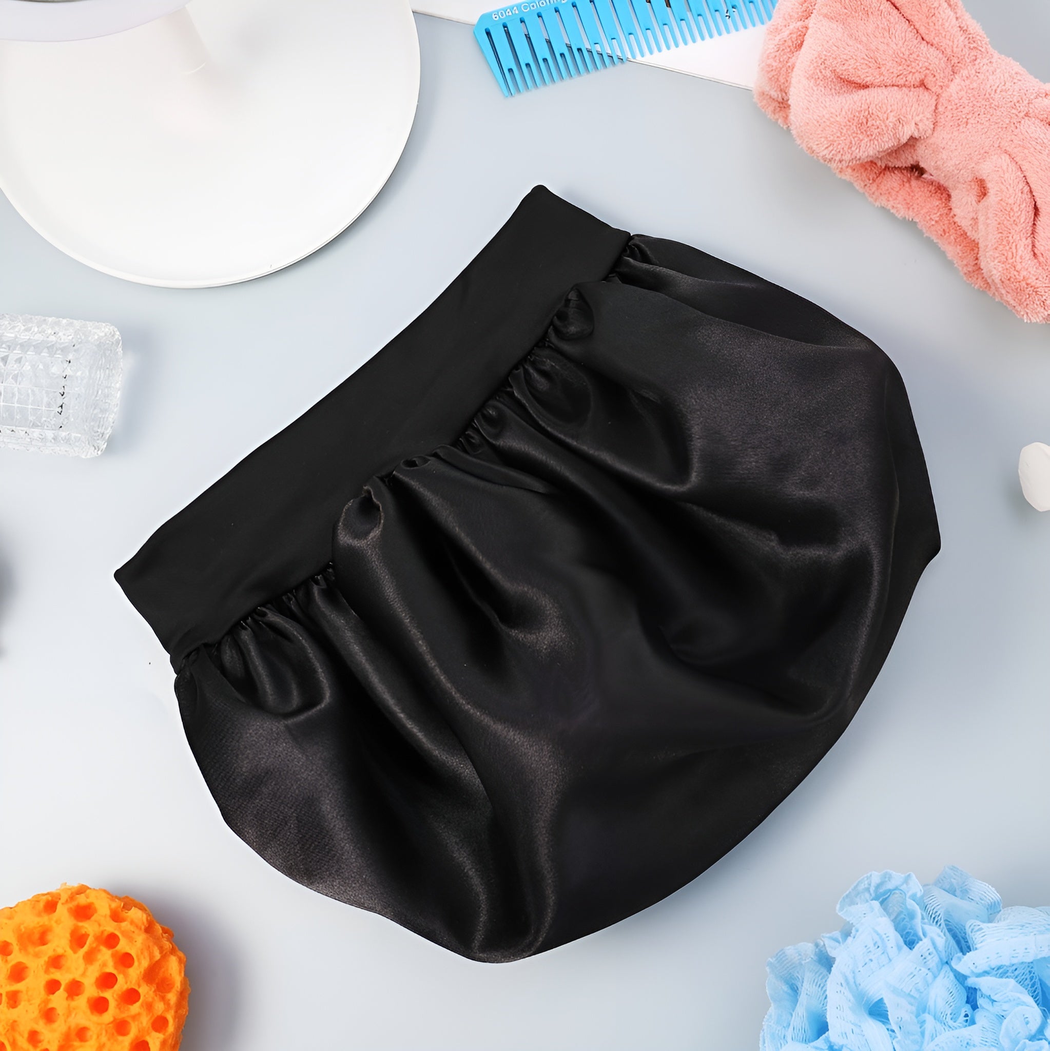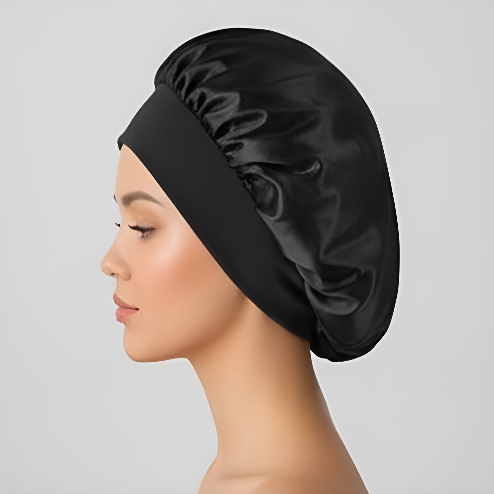 Confeccionado en satén sedoso, suave y transpirable, ayuda a conservar la humedad del cabello y reduce la fricción. La banda larga de elastano elástico ofrece un ajuste cómodo sin apretar ni dejar marcas, superando ampliamente a las bandas elásticas tradicionales. Es una opción más cómoda, más suave y mucho más amigable con tu cabello.