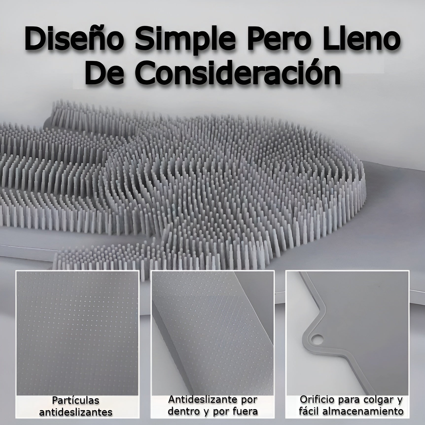 Cepillo denso y suave El lado con cerdas compactas genera más espuma y mayor fricción, mientras el lado suave protege superficies delicadas sin rayar.