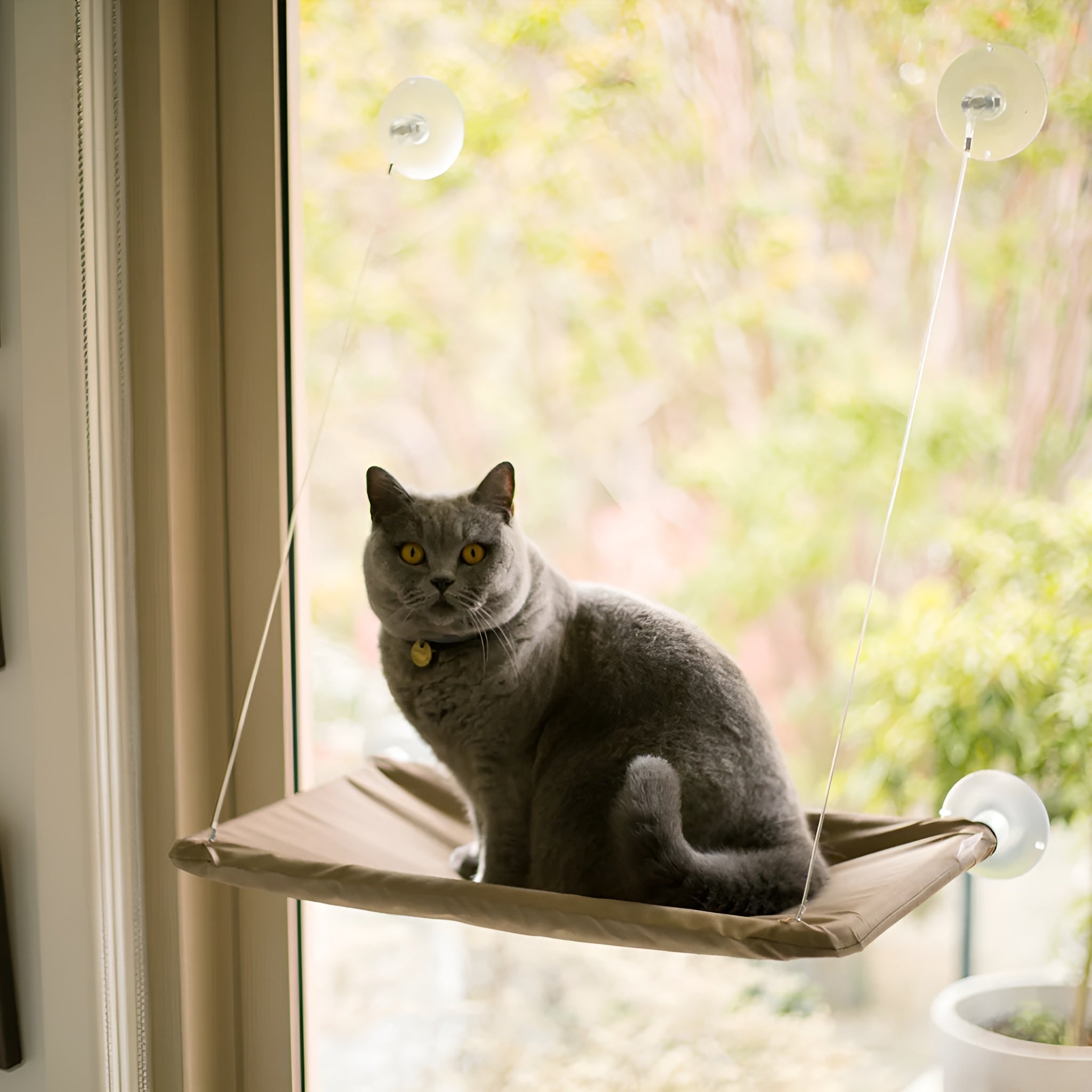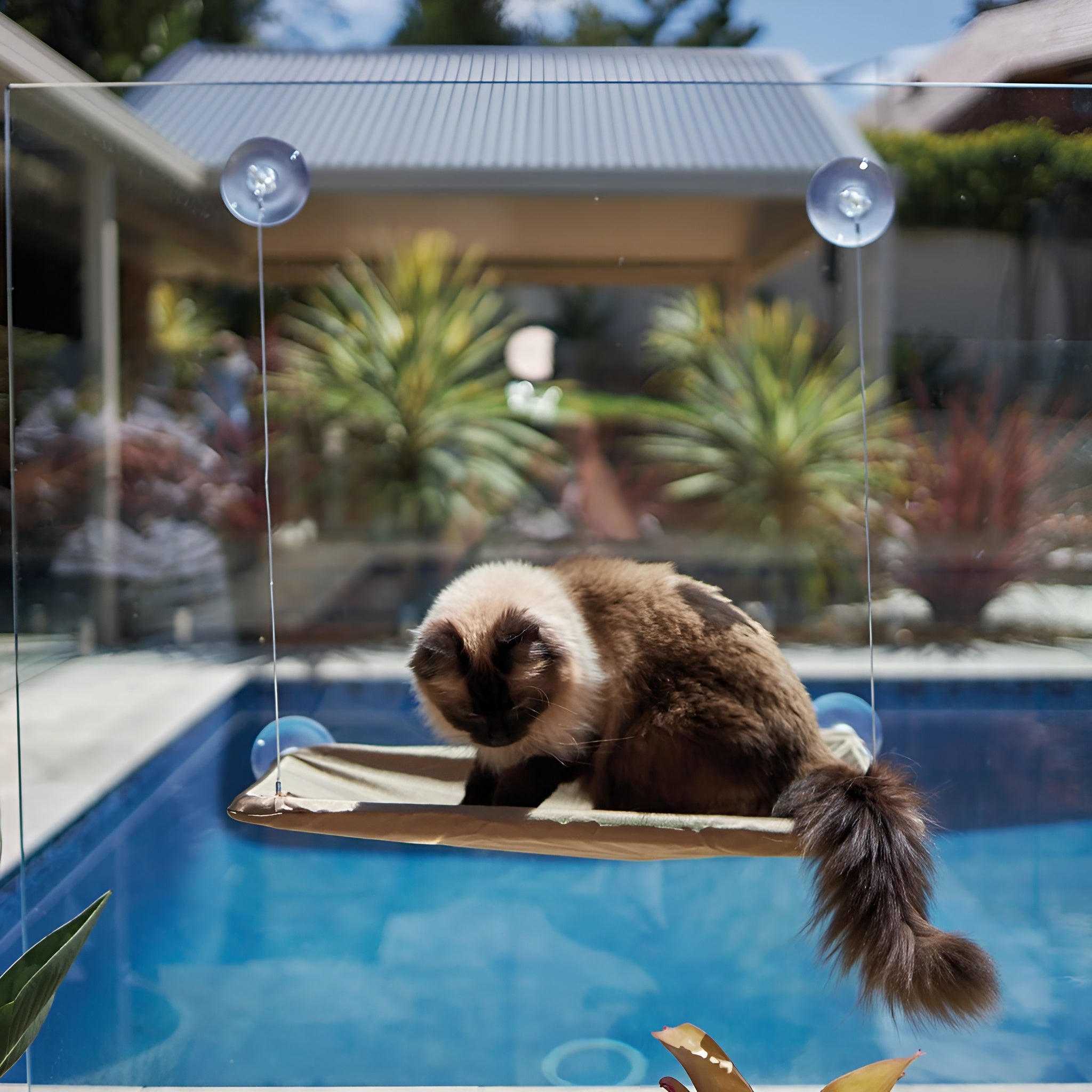 Fabricada con tela Oxford transpirable y ventosas de plástico PVC de alta resistencia, garantiza estabilidad y seguridad, soportando entre 5 y 10 kg sin problemas. El material evita el sobrecalentamiento del cuerpo del gato, manteniéndolo fresco en verano; y en invierno, basta con añadir un colchón para mayor confort.