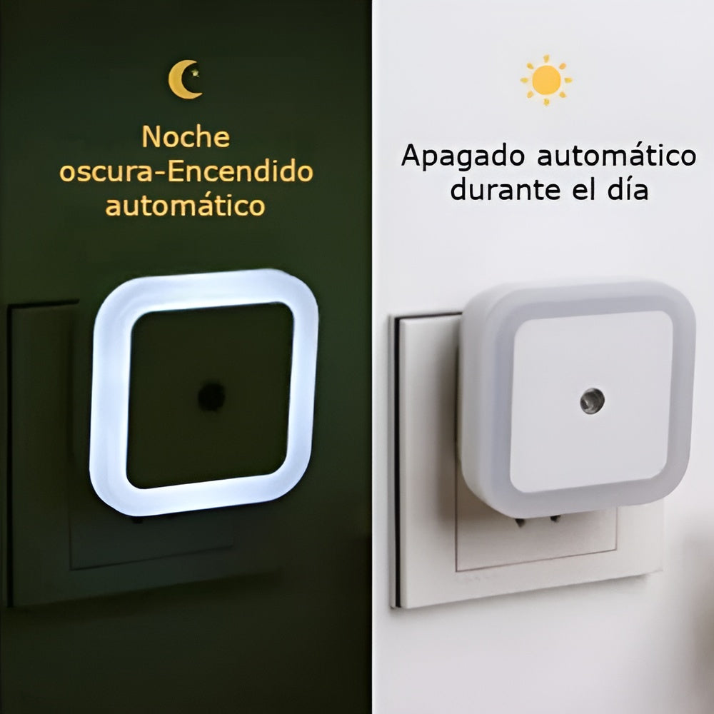 Cuenta con un sensor inteligente de luz que se enciende automáticamente al anochecer y se apaga al amanecer, eliminando la necesidad de intervención manual. Su iluminación suave y uniforme brinda un resplandor delicado que no incomoda, siendo perfecta para dormitorios, pasillos y habitaciones infantiles.