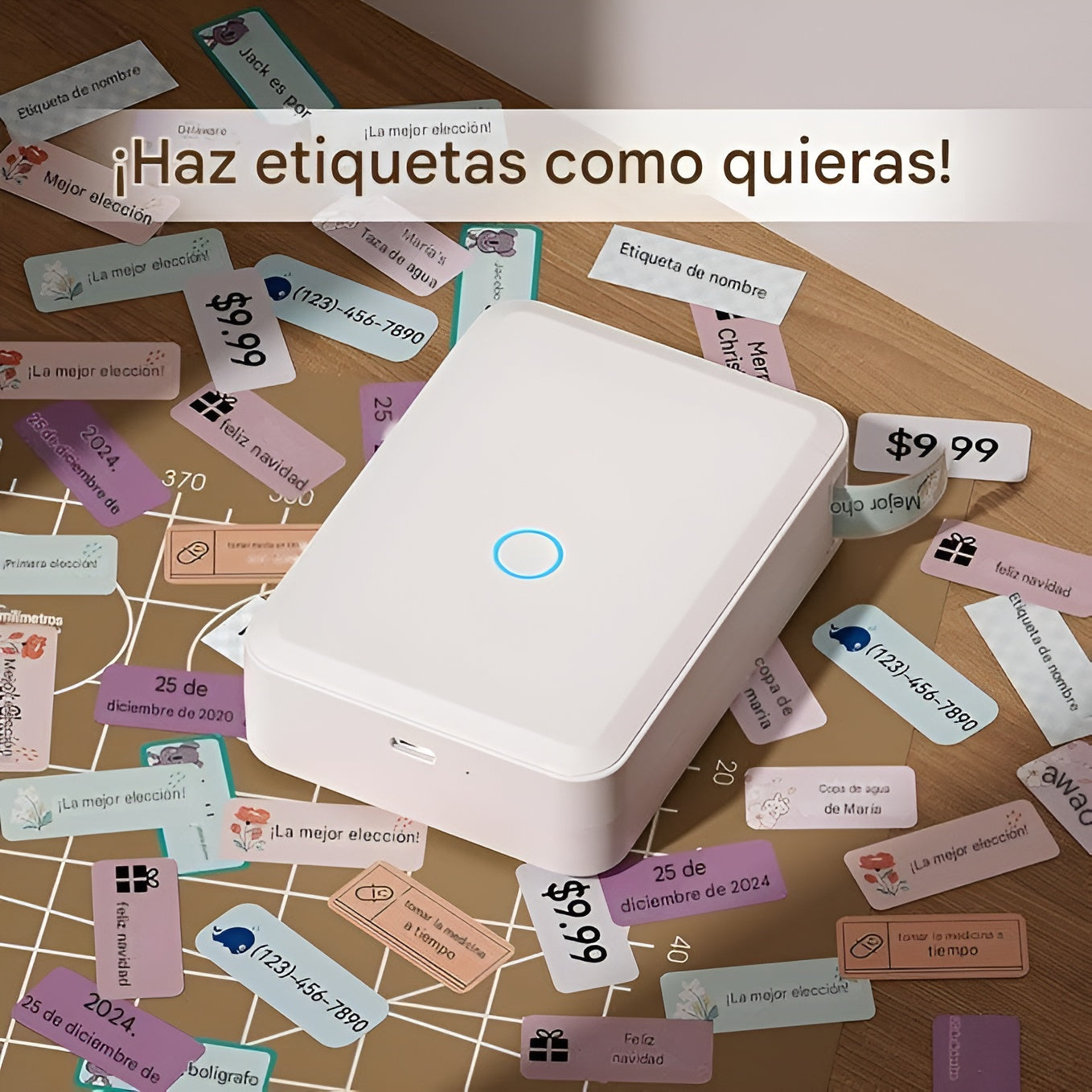 Su funcionamiento es sorprendentemente práctico. Solo descarga la aplicación, conecta la etiquetadora vía Bluetooth y comienza a diseñar. Puedes personalizar textos, números, símbolos, gráficos, códigos de barras, códigos QR y logotipos, todo desde tu móvil iOS o Android. Además, se carga fácilmente mediante USB‑C, manteniéndose siempre lista para acompañarte en tus tareas diarias.