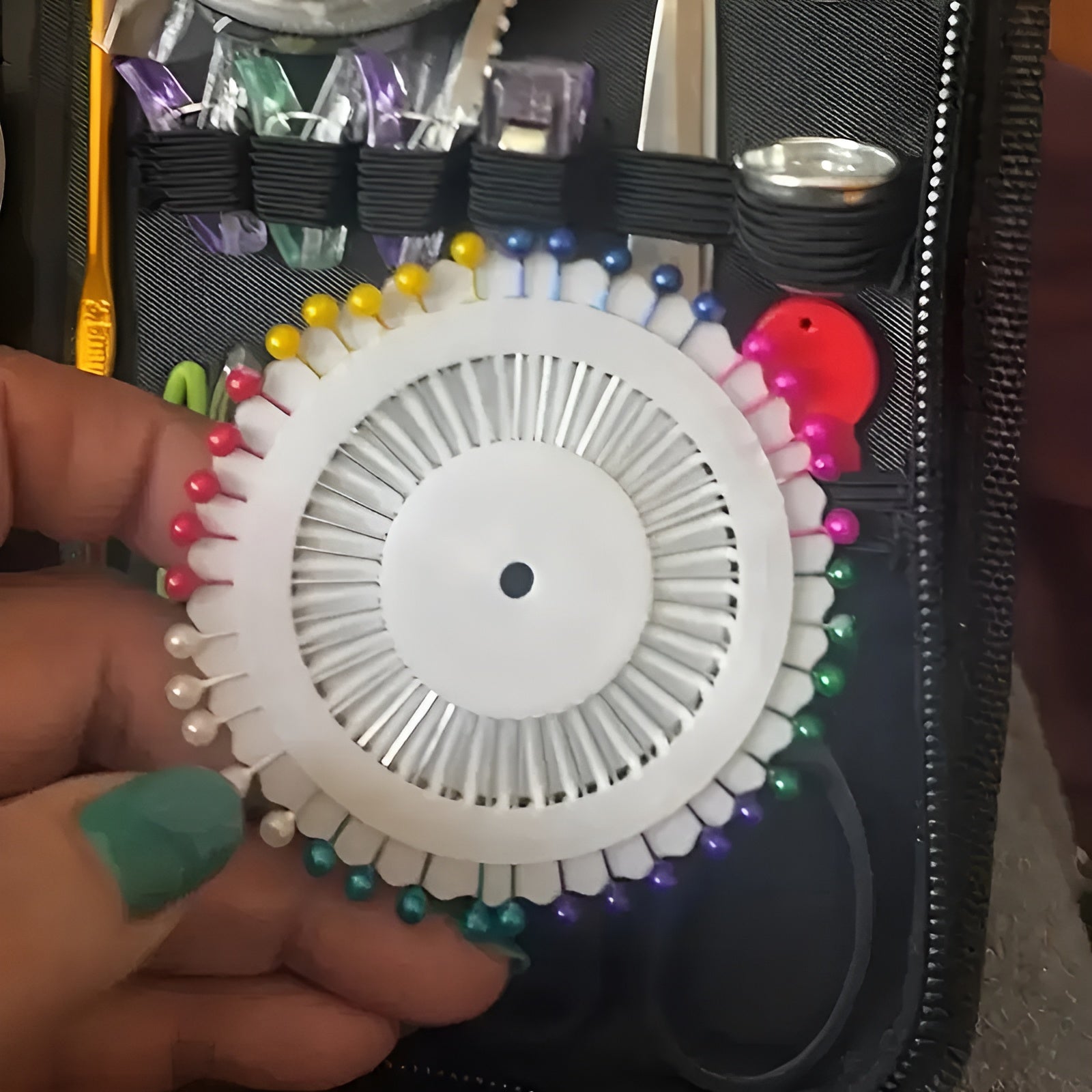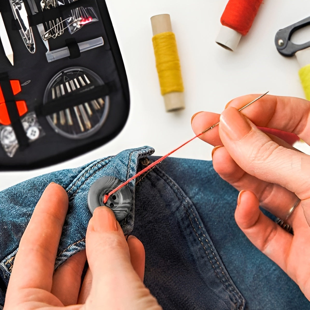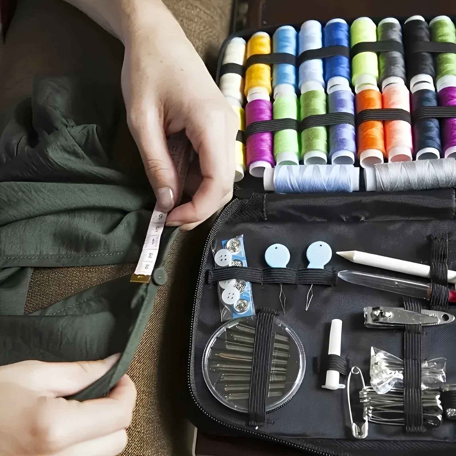 Incluye una selección completa de herramientas esenciales: agujas, hilos de 65 yardas, tijeras, botones, dedal, enhebra dores, desgarrador de costura y más. Todo organizado en un estuche ligero y funcional que maximiza el espacio sin sacrificar utilidad.