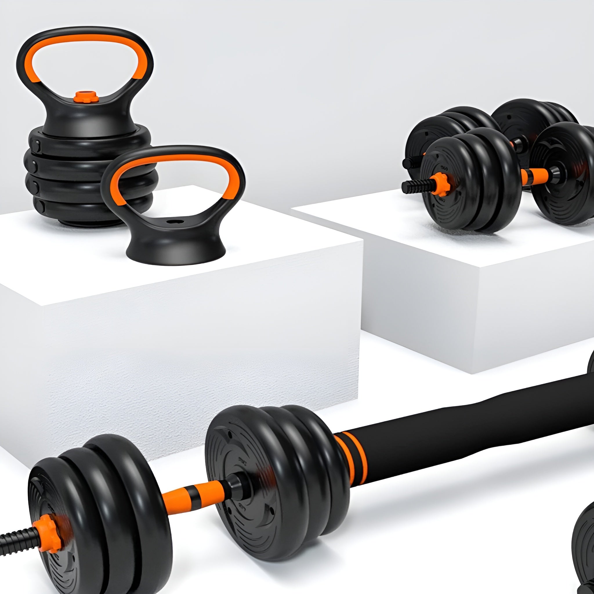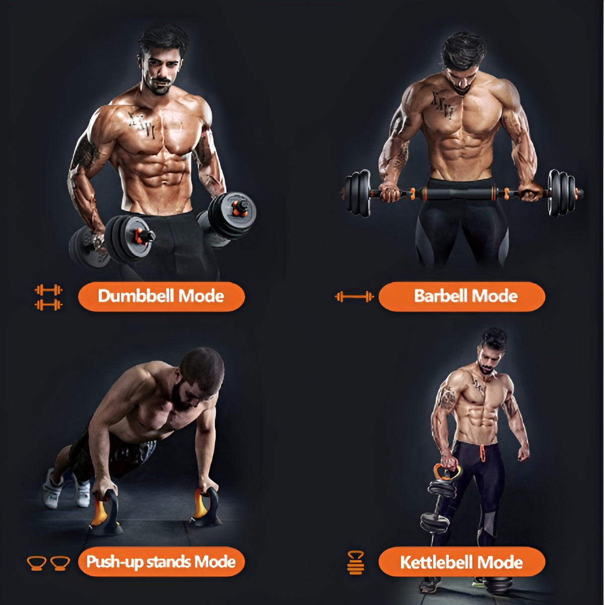 Función 4 en 1: con esto obtienes un par de mancuernas también pesas, pesas rusas y un soporte para flexiones que te ayuda a hacer muchos ejercicios, incluyendo press de banca, sentadillas, etc.
