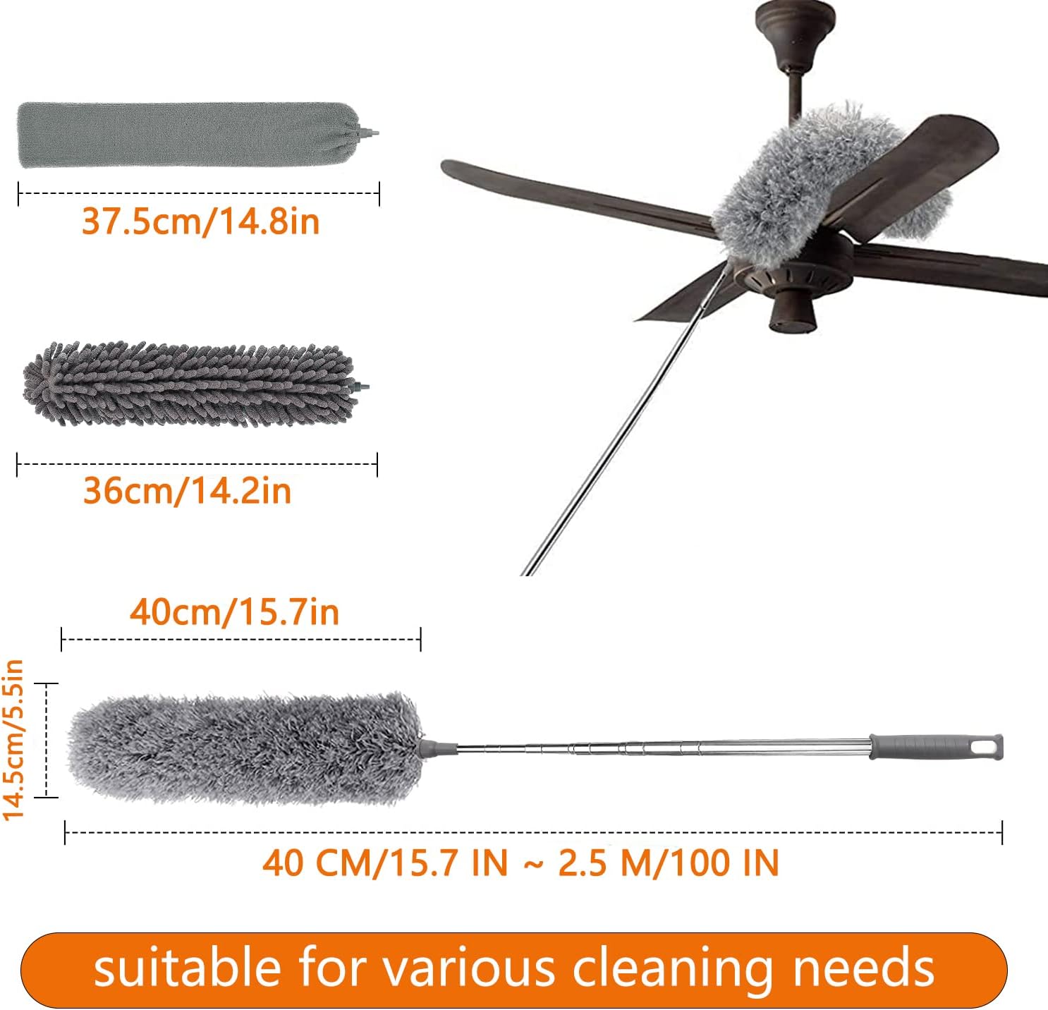Kit cepillos de limpieza 3 en 1: incluye: 1 poste telescópico de 30 a 100 pulgadas, 3...