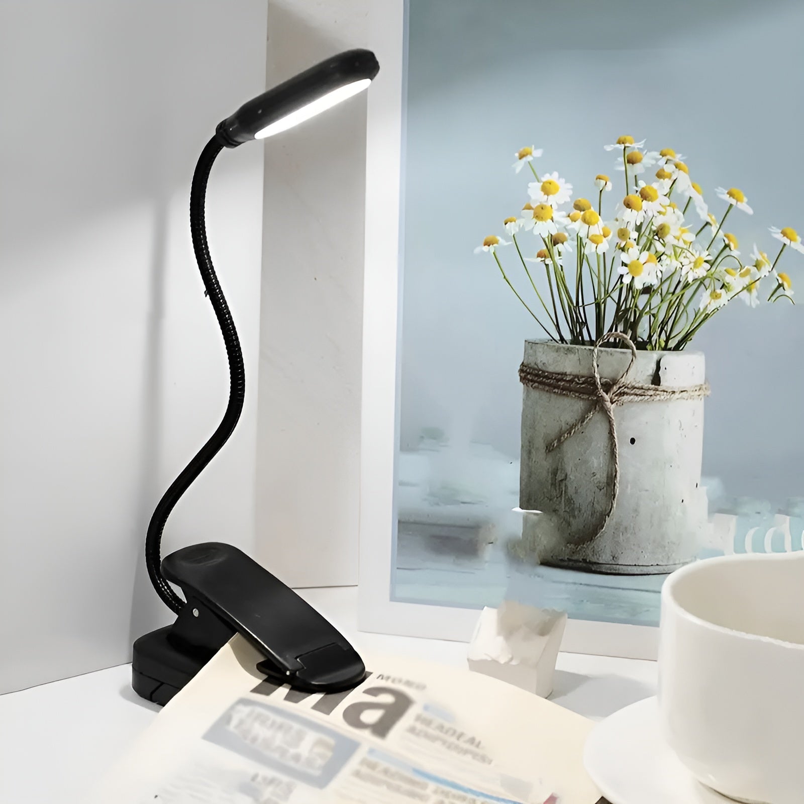 Su brazo flexible te permite orientar la luz con precisión, mientras que el clip de sujeción firme facilita su instalación en superficies delgadas como estantes, cabeceras o mesas. Ideal para espacios reducidos donde se necesita luz puntual sin ocupar demasiado lugar.