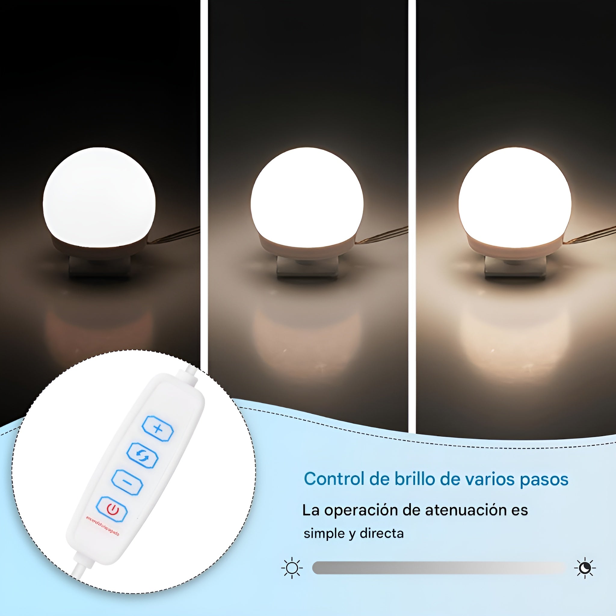 Entre bombillas permiten ajustar el cable según tu preferencia, logrando una instalación personalizada. Su diseño versátil no solo sirve para espejos de maquillaje o tocadores, sino también para decorar dormitorios, baños, barberías, cafés y más.