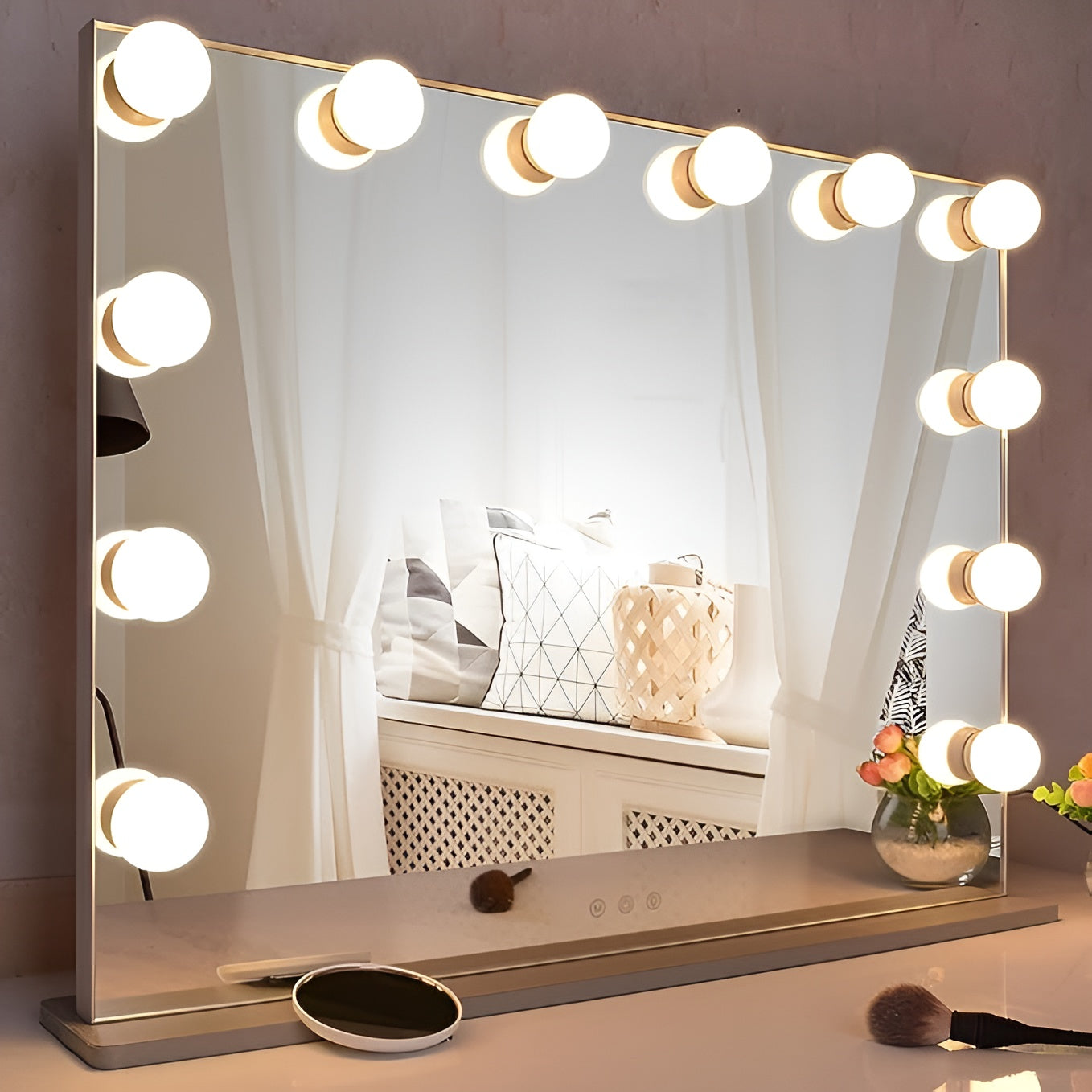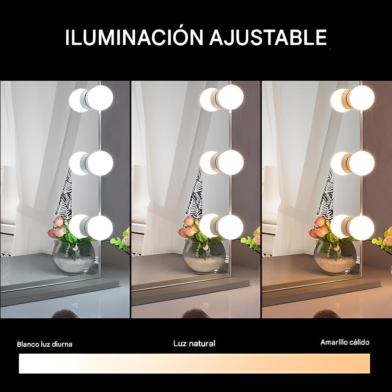 Las Luces de Espejo de Tocador estilo Hollywood son la elección perfecta para transformar tu espacio en un rincón profesional y elegante. Con 14 bombillas LED SMD regulables, ofrecen un brillo uniforme y suave que ilumina tu rostro sin causar fatiga visual, garantizando un maquillaje impecable en todo momento.