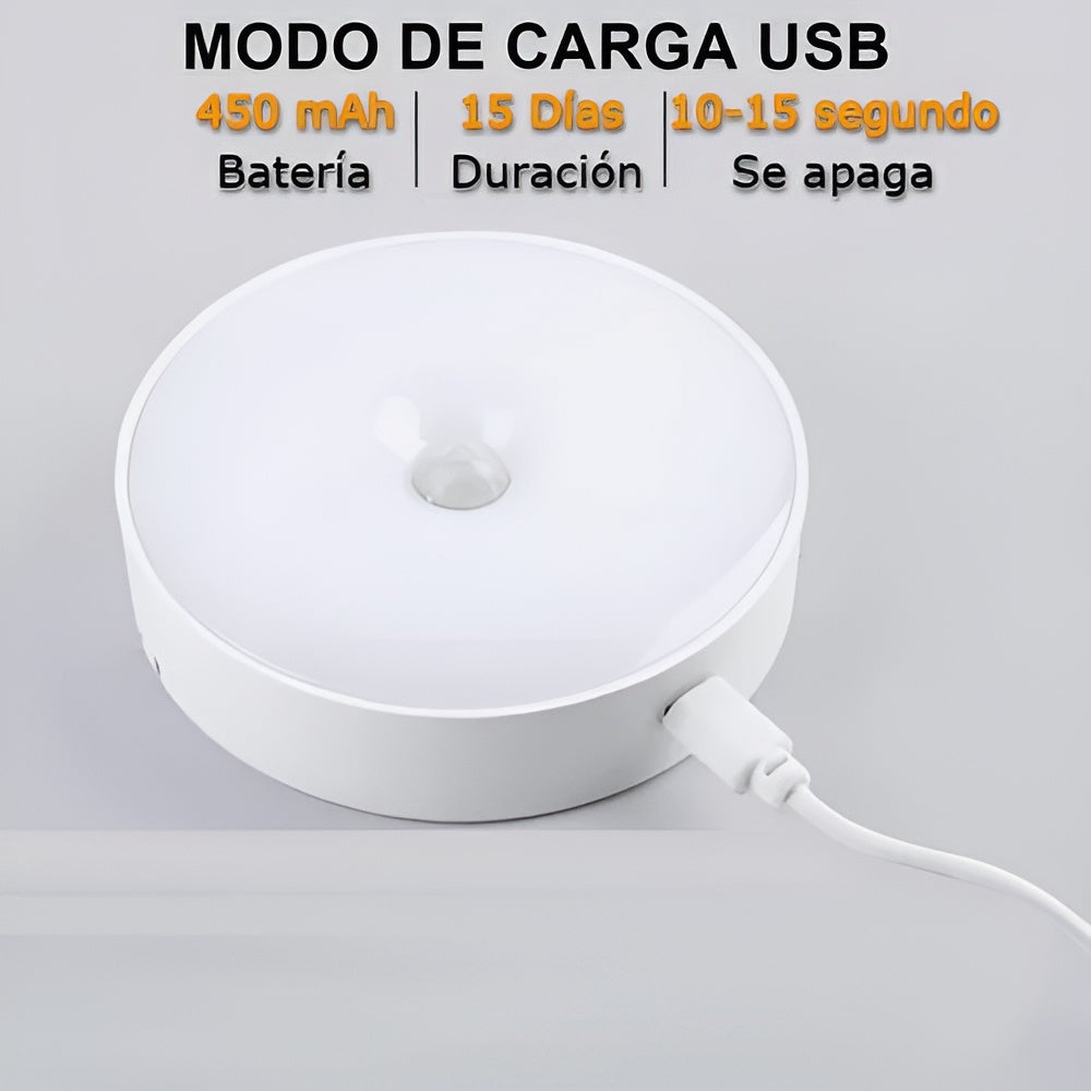 Sensor de movimiento inteligente: Se activa solo cuando detecta movimiento en un rango de 3 a 5 metros, encendiéndose automáticamente en zonas oscuras.
