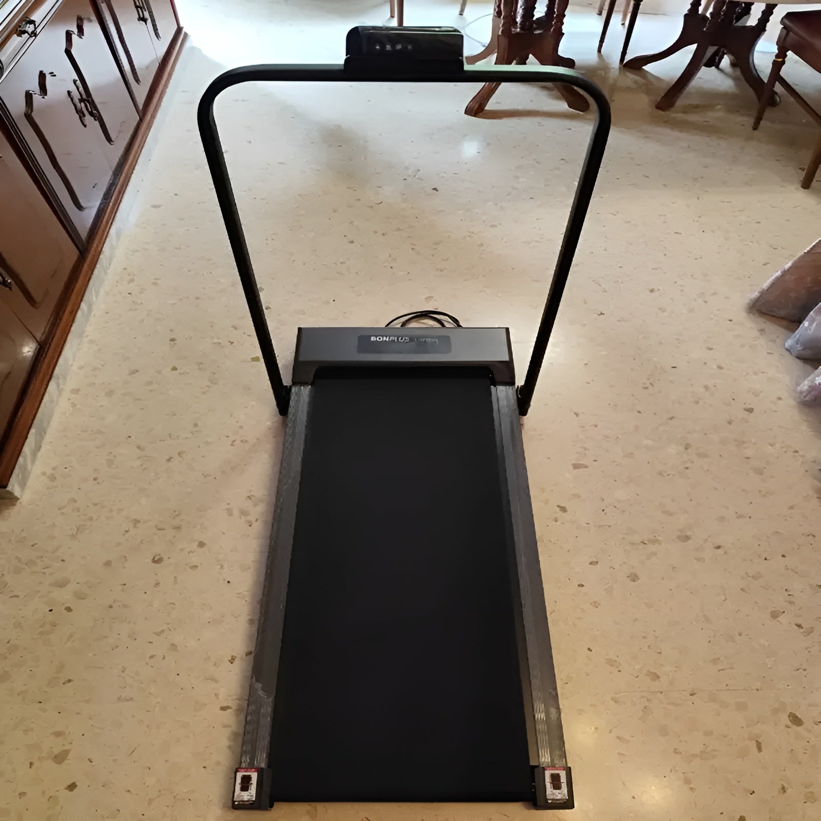 Su pantalla LED multifuncional te permite monitorear tiempo, distancia, calorías y velocidad , mientras disfrutas de tu contenido favorito gracias al soporte para celular o tablet incluido. Además, su cinta antideslizante con absorción de impactos garantiza una experiencia de ejercicio cómoda y segura.