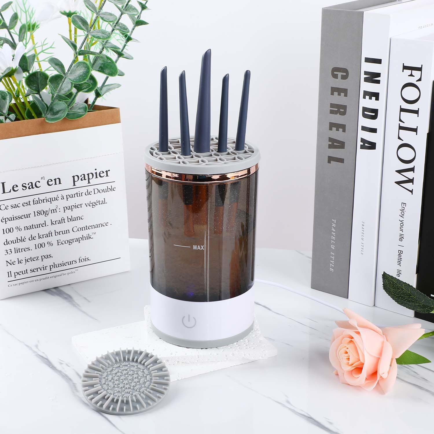Máquina limpiadora de brochas de maquillaje
